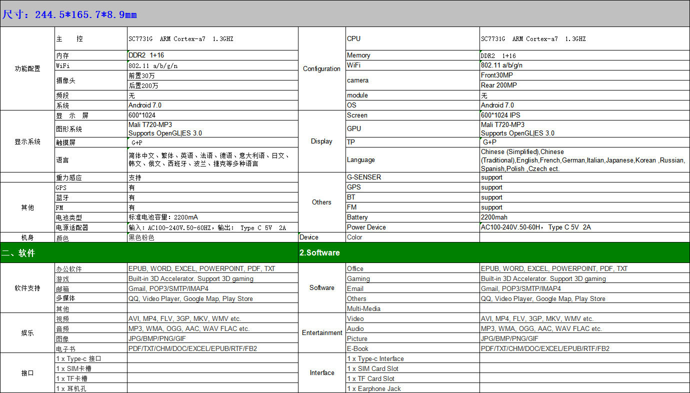 | 屏幕尺寸 | 7英寸 | 语言 | 其它,英语,简体中文,繁体中文 |