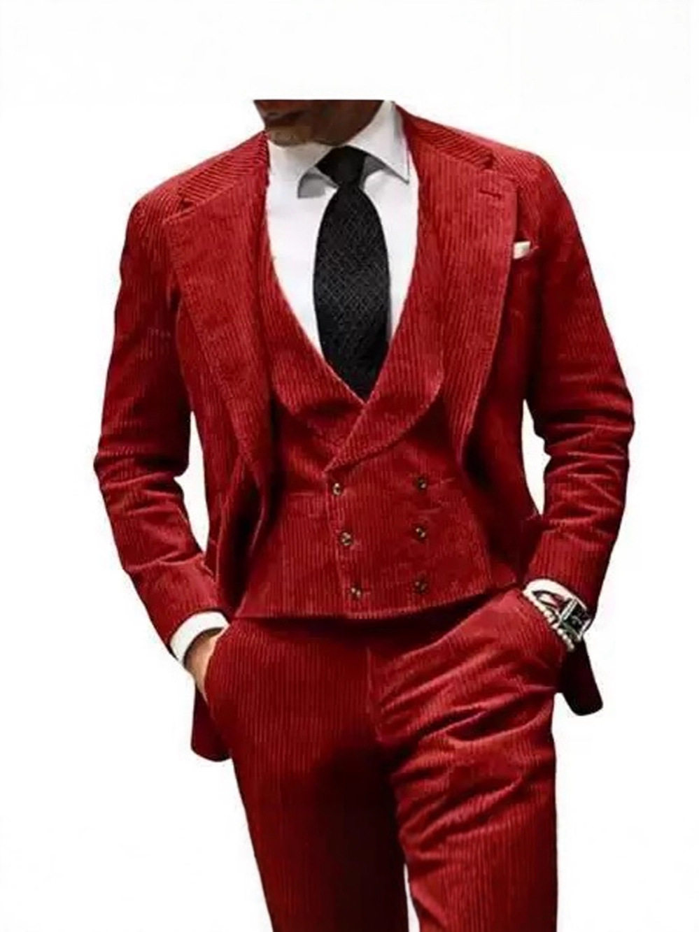XXXXL / Burgundy (jacket, vest and pants)