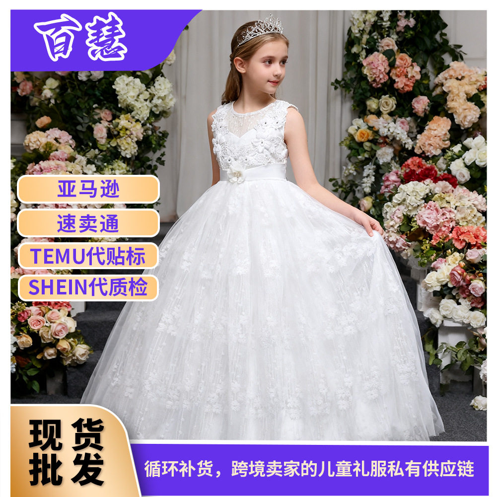 • 儿童礼服亚马逊货源女童蕾丝礼服裙婚纱 中大童纯色公主礼服裙831