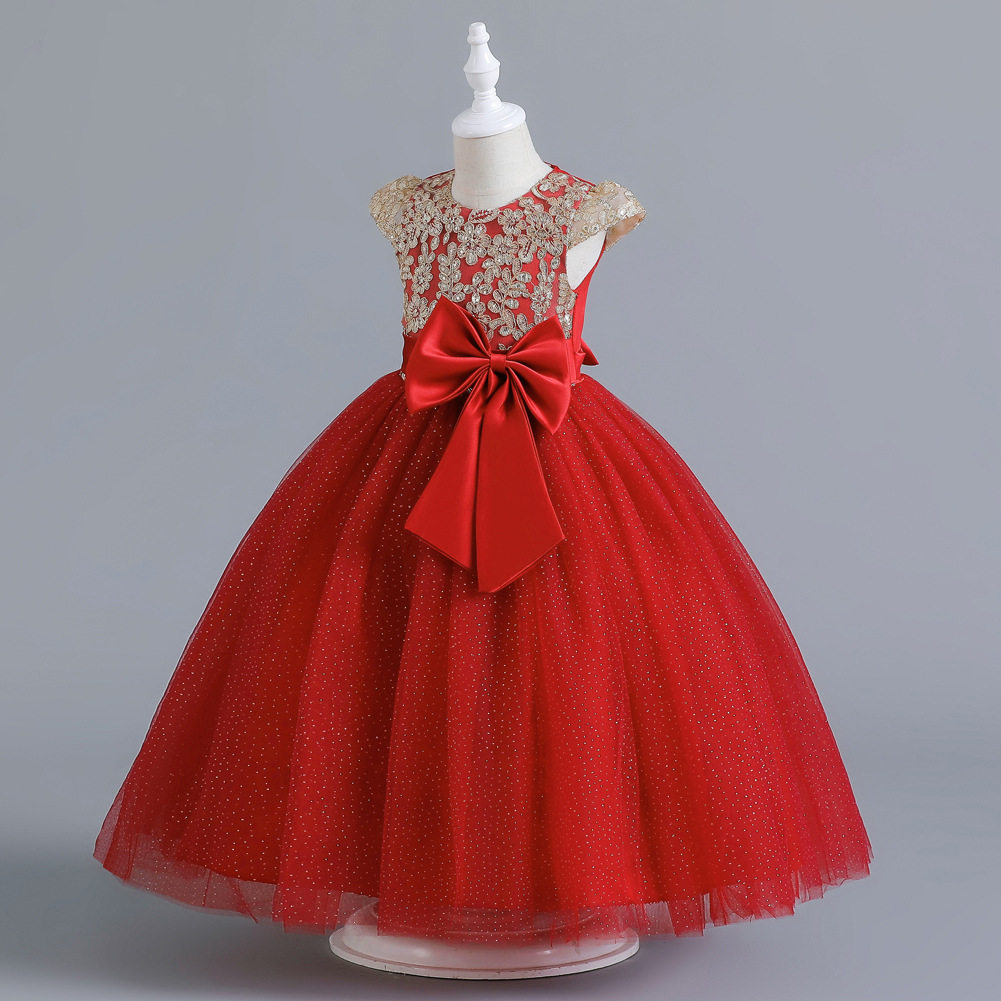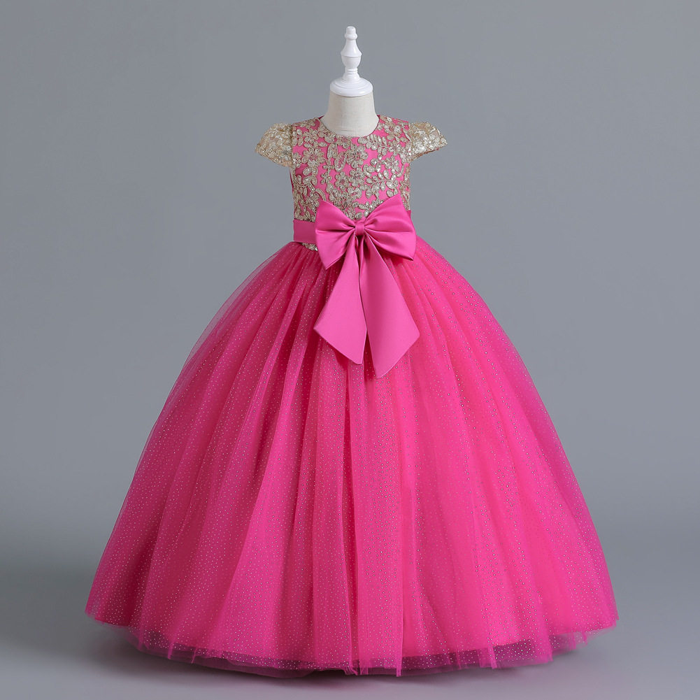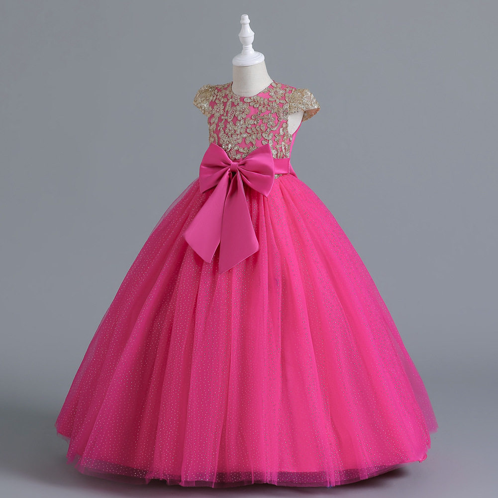 • 亚马逊新款儿童礼服 公主裙ins女孩长款亮片连衣裙童装批发