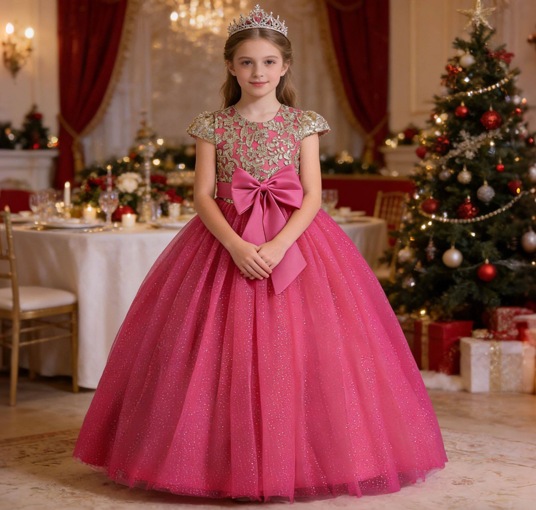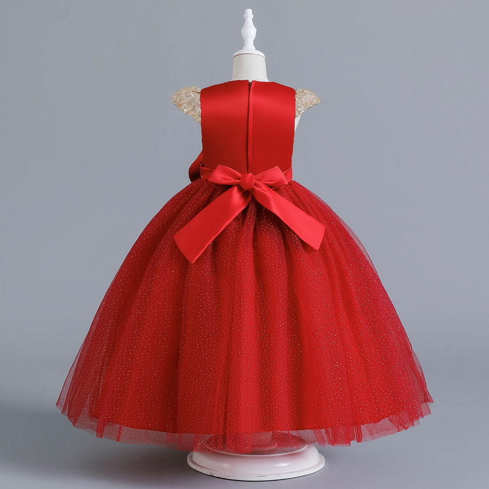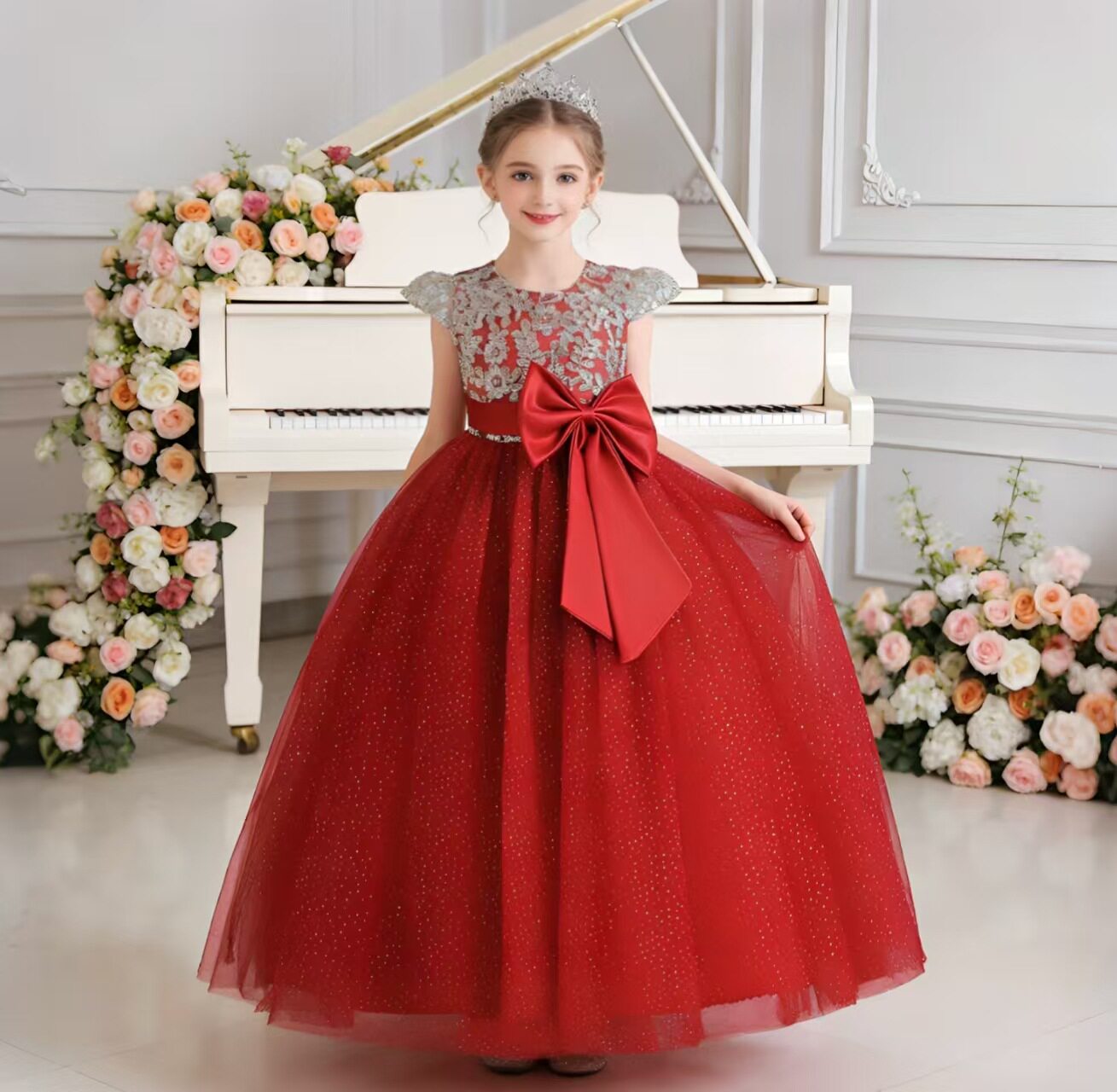 • 2025新款女童礼服裙中大童小飞袖亮片婚纱花童钢琴表演公主裙长款