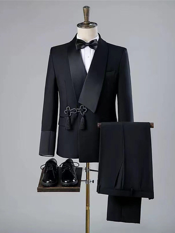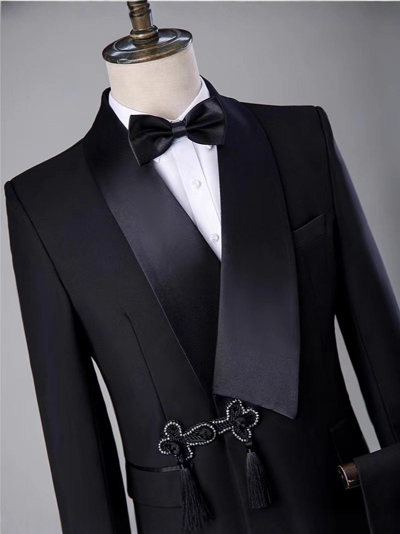 Chinese plate buckle Chinese style banquet slim two-piece suit