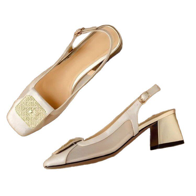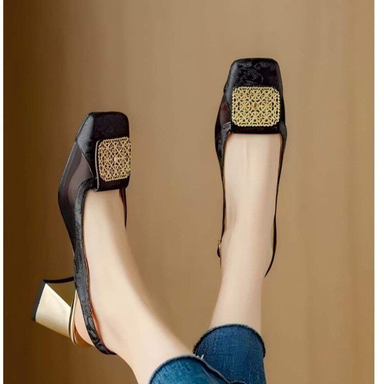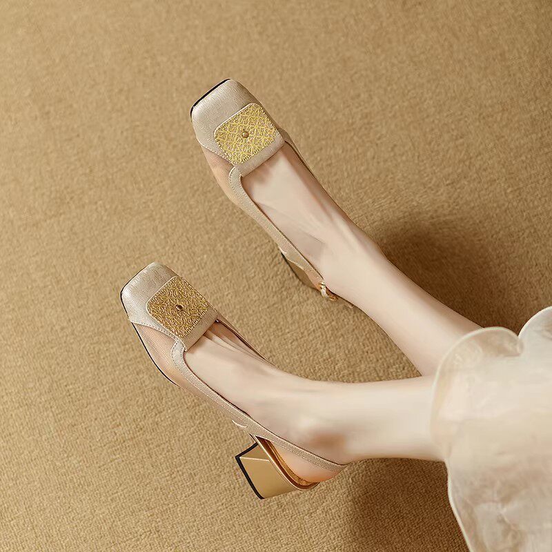Fashion women's shoes square toe shallow mouth sandals wedge heel high heel sandals black apricot