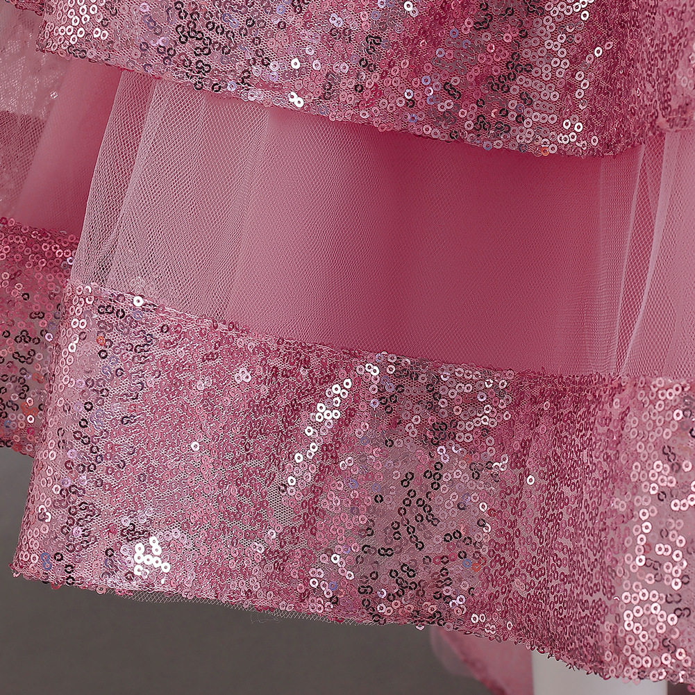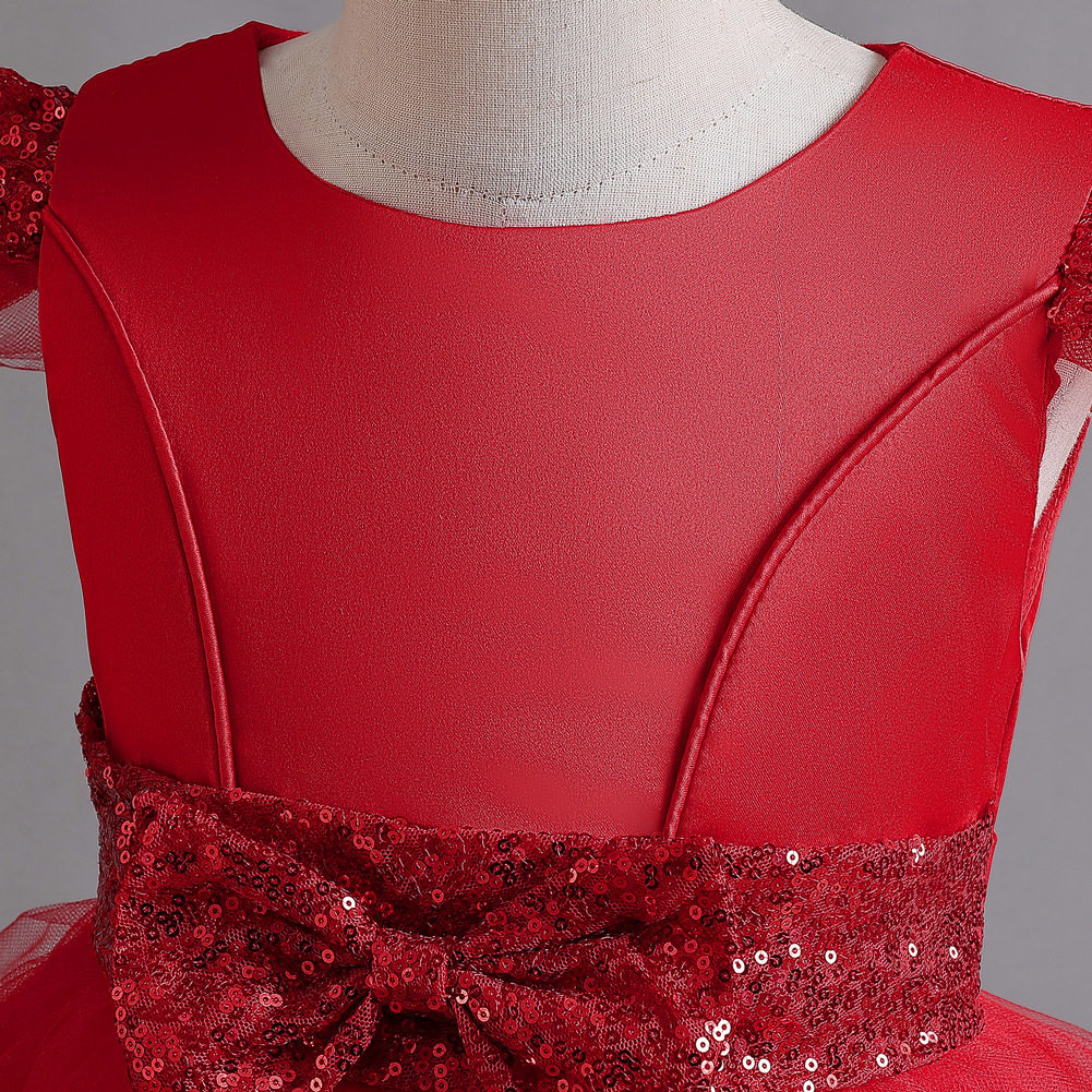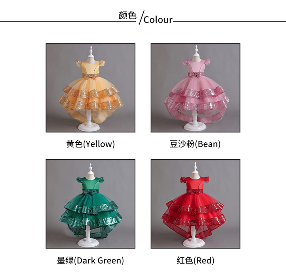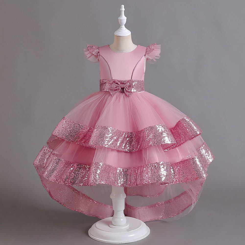 • 跨境中大童亮片公主裙女童礼服裙生日宴会蝴蝶结亮片吊带拖尾9003