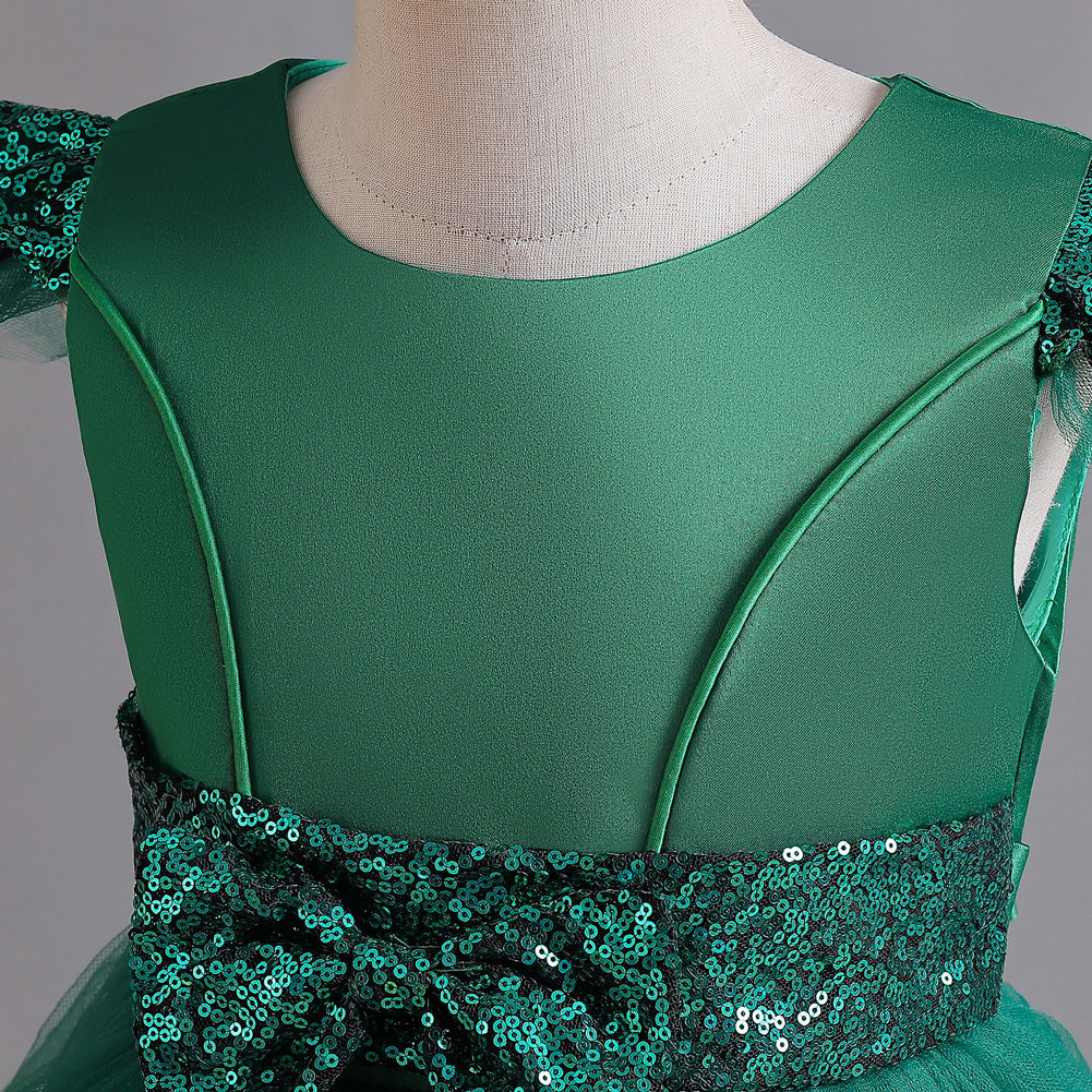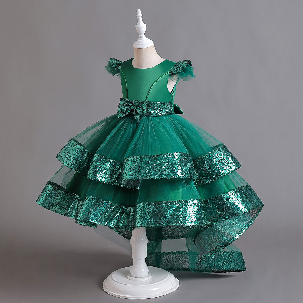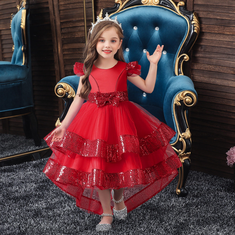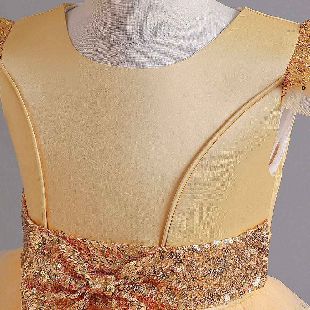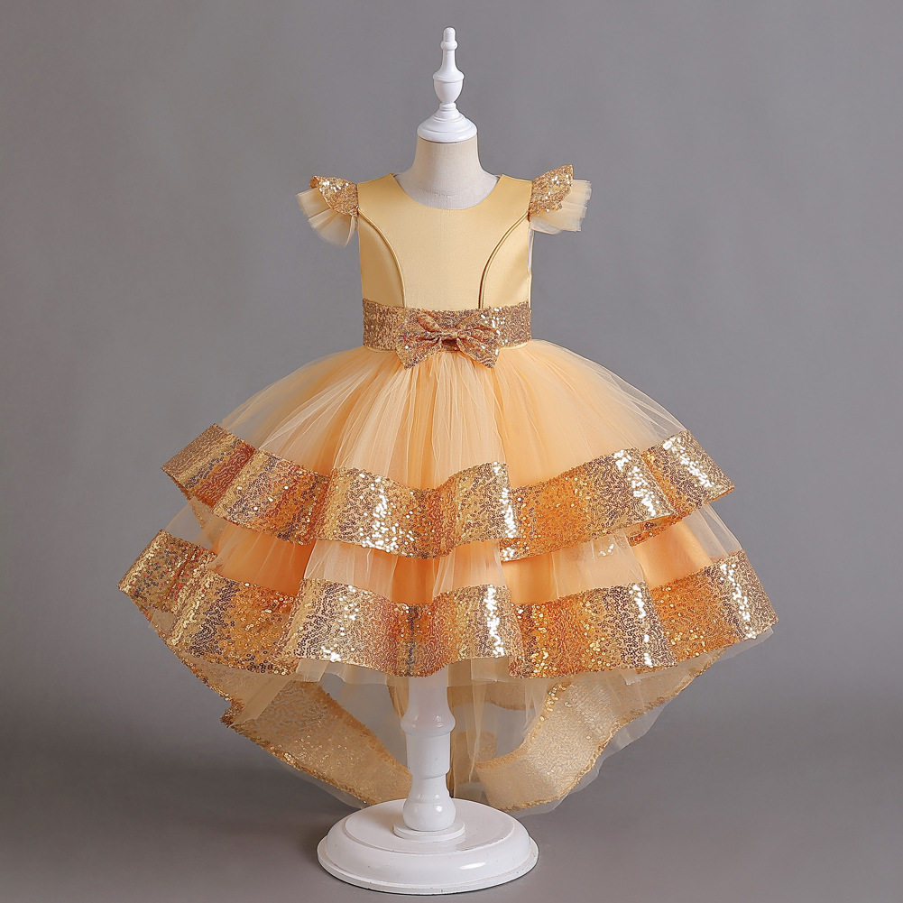 • 跨境中大童亮片公主裙女童礼服裙生日宴会蝴蝶结亮片吊带拖尾9003