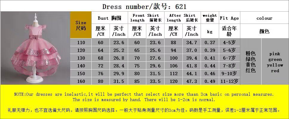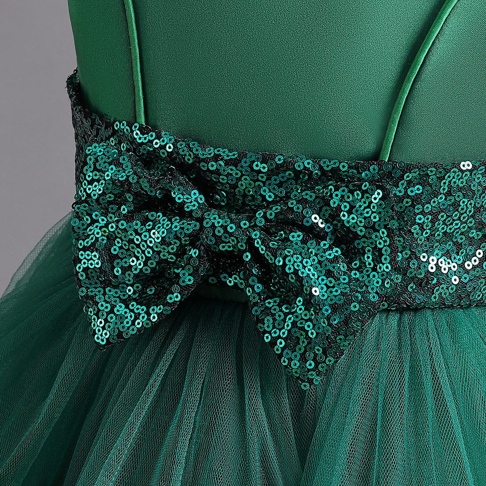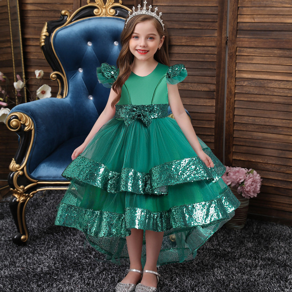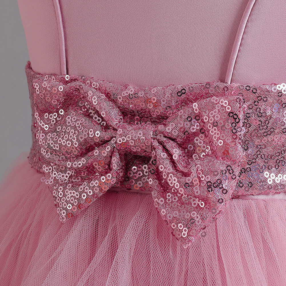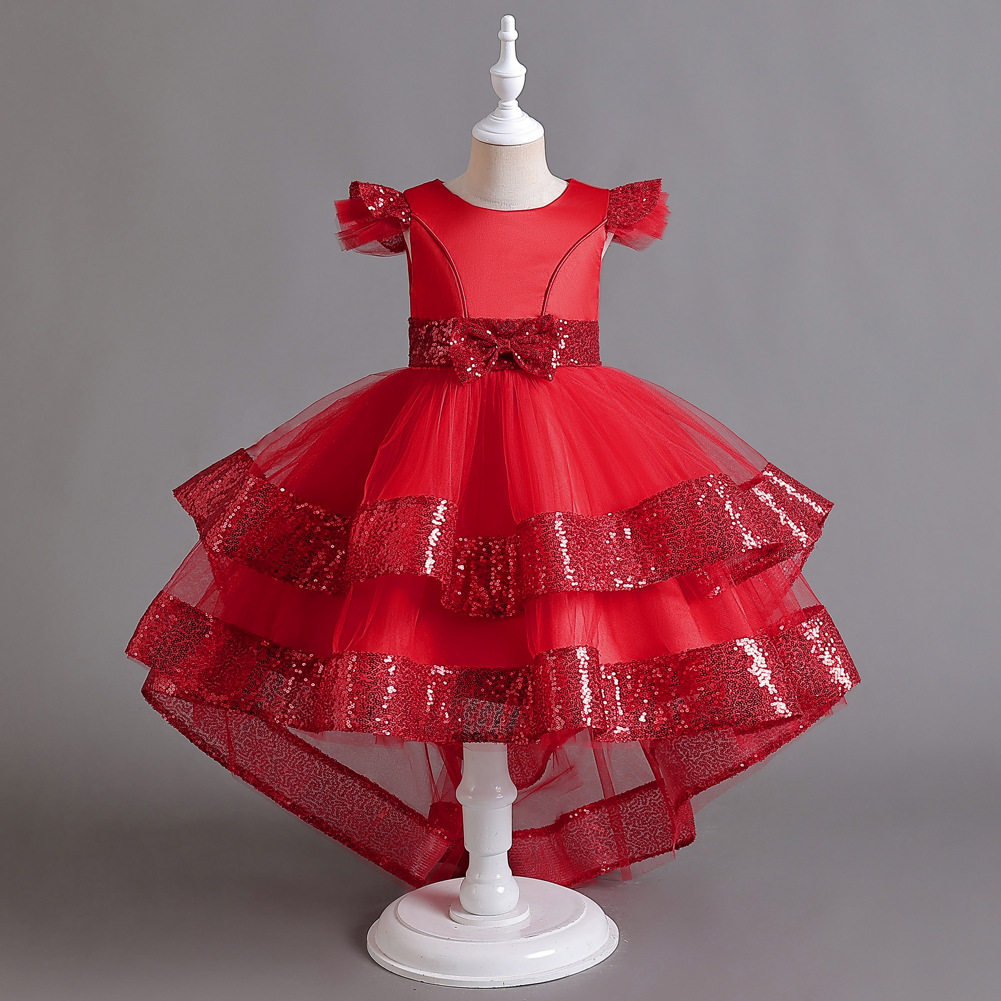 • 跨境中大童亮片公主裙女童礼服裙生日宴会蝴蝶结亮片吊带拖尾9003