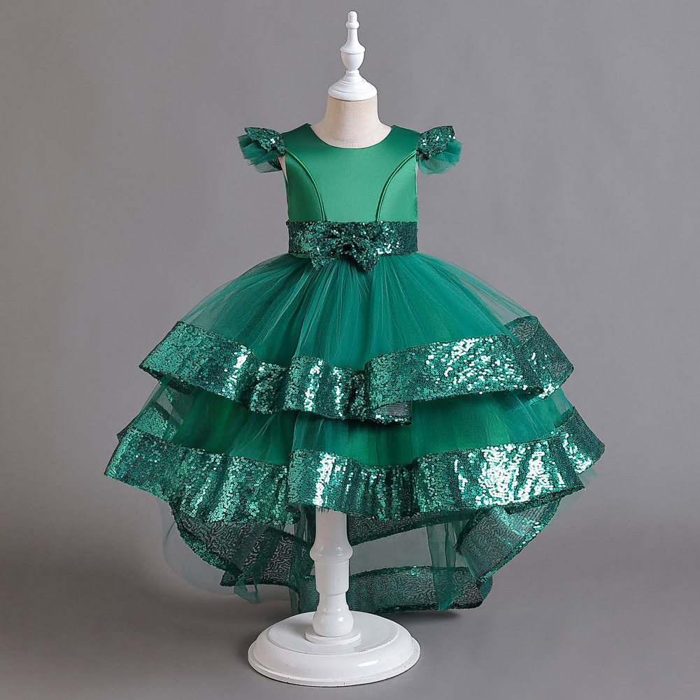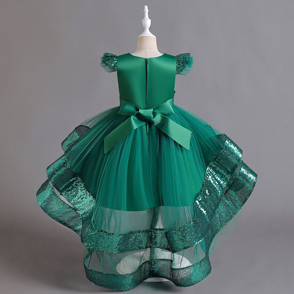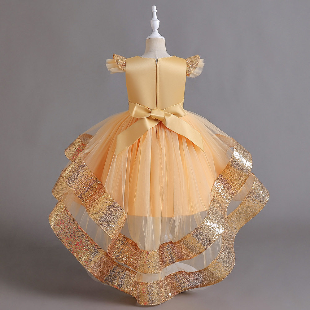 • 女童公主裙儿童欧美新款网纱亮片拖尾礼服宝宝生日派对钢琴演出服