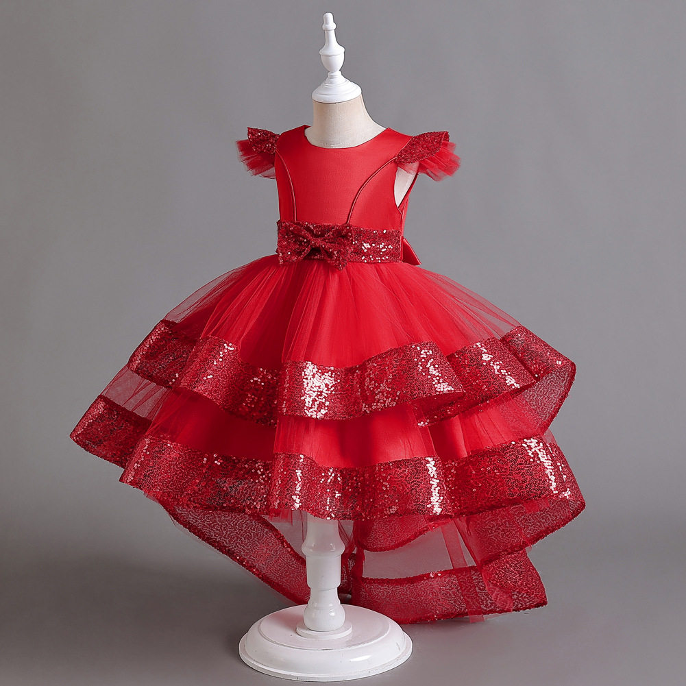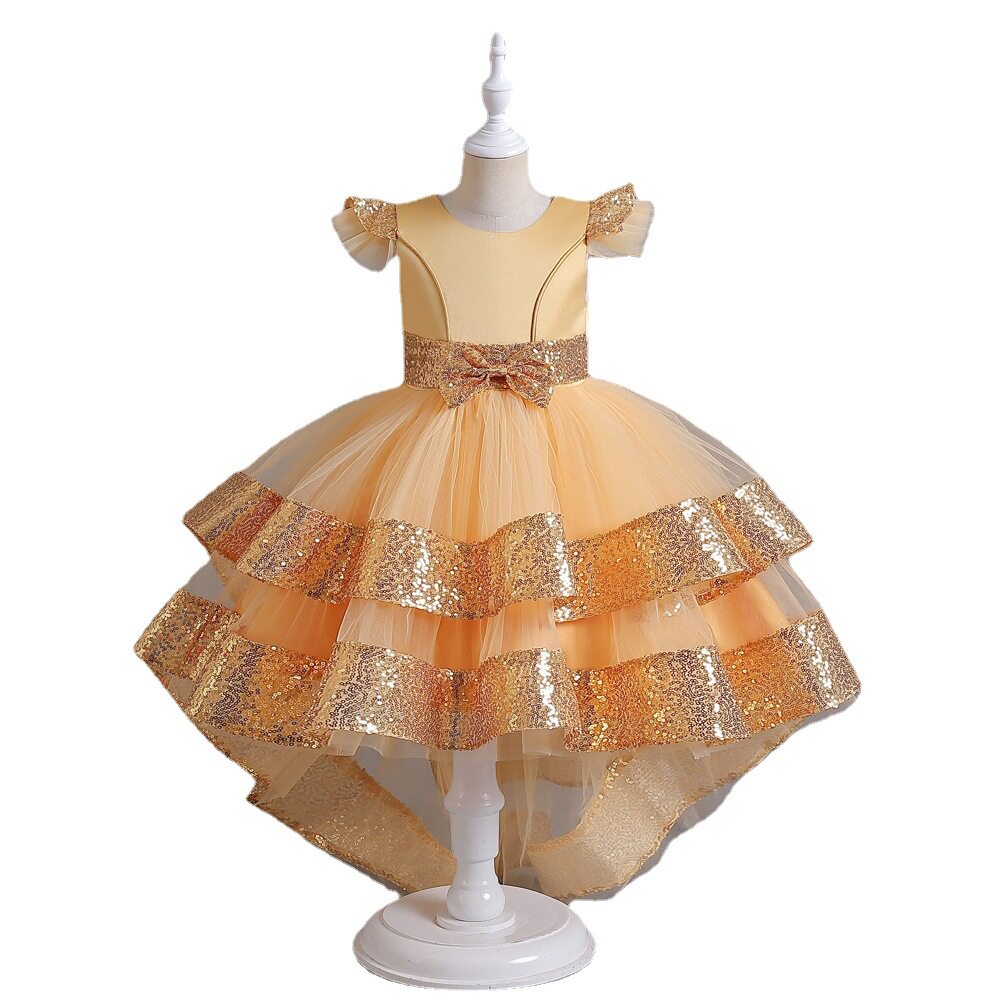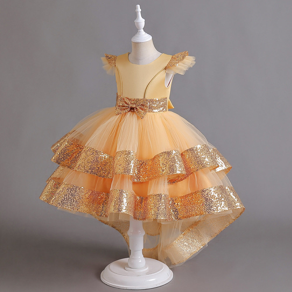 girls princess dress mesh tutu skirt little host flower girl sequin piano performance dress
