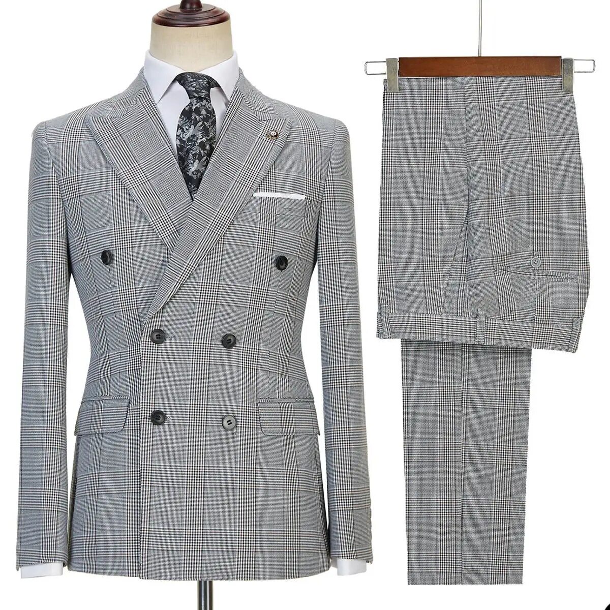men's plaid suit double-breasted two-piece suit
