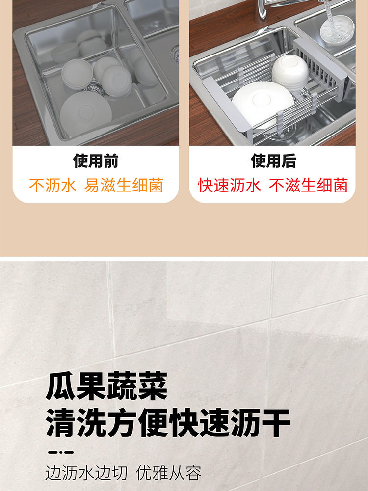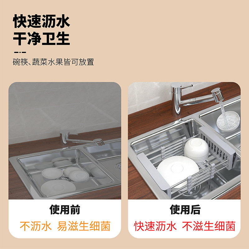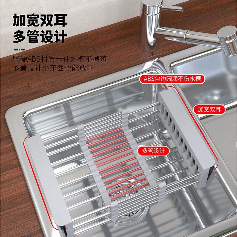 New retractable storage rack 304 stainless steel sink drain basket kitchen sink drain rack