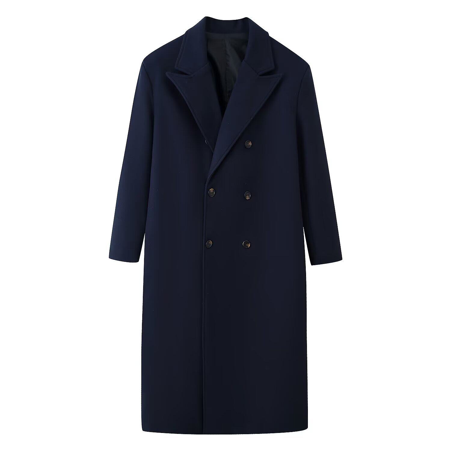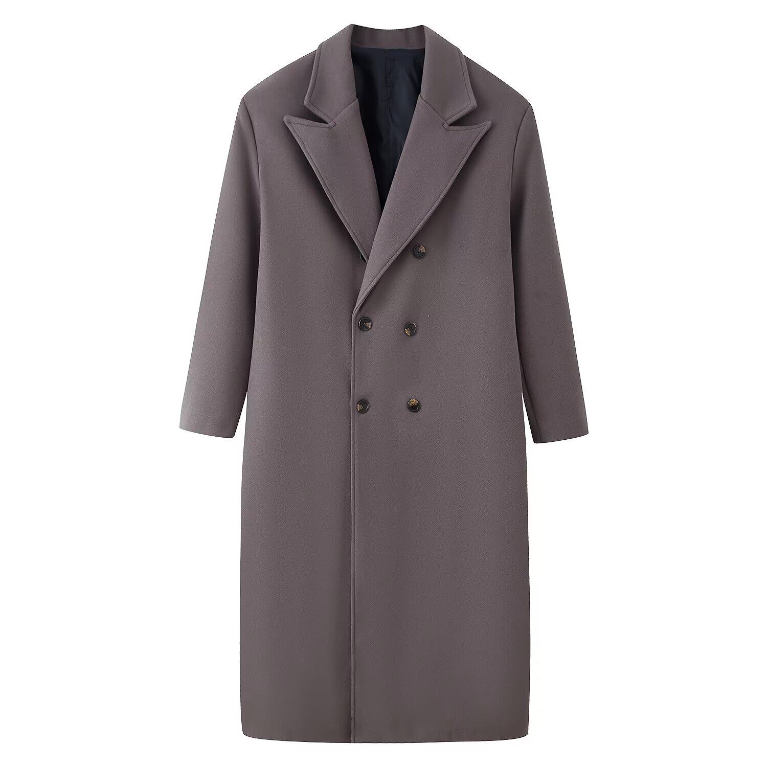 Women's Temperament Five-Color Double-breasted Over-the-Knee Long Coat Woolen Jacket