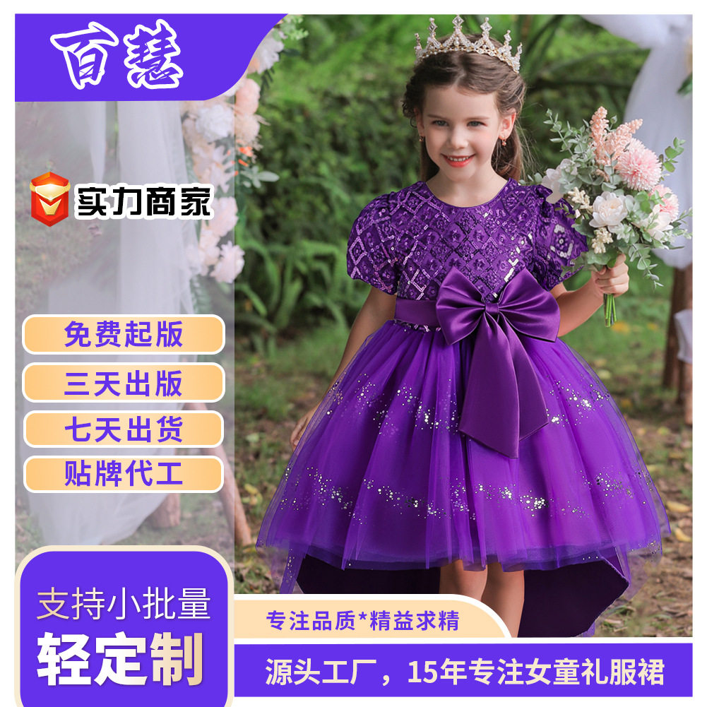 女童公主裙儿童欧美新款网纱亮片拖尾礼服宝宝生日派对钢琴演出服