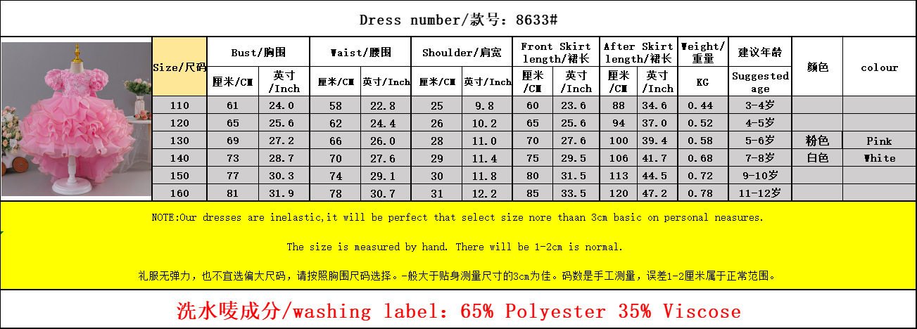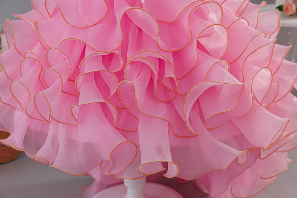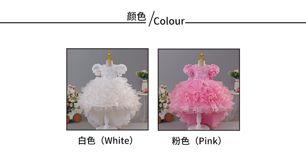 跨境货源儿童表演礼服裙中大童拖尾公主连衣裙蛋糕蓬蓬表演服816