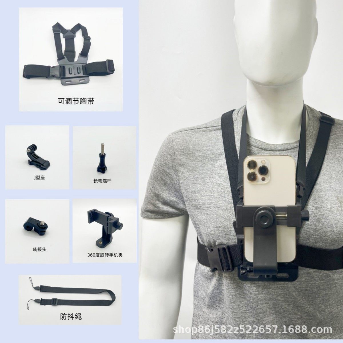 (FREE SEA SHIPPING) First Person View Shooting Accessories Sports Camera Chest Shooting Strap Live Outdoor Riding Mobile Phone Holder