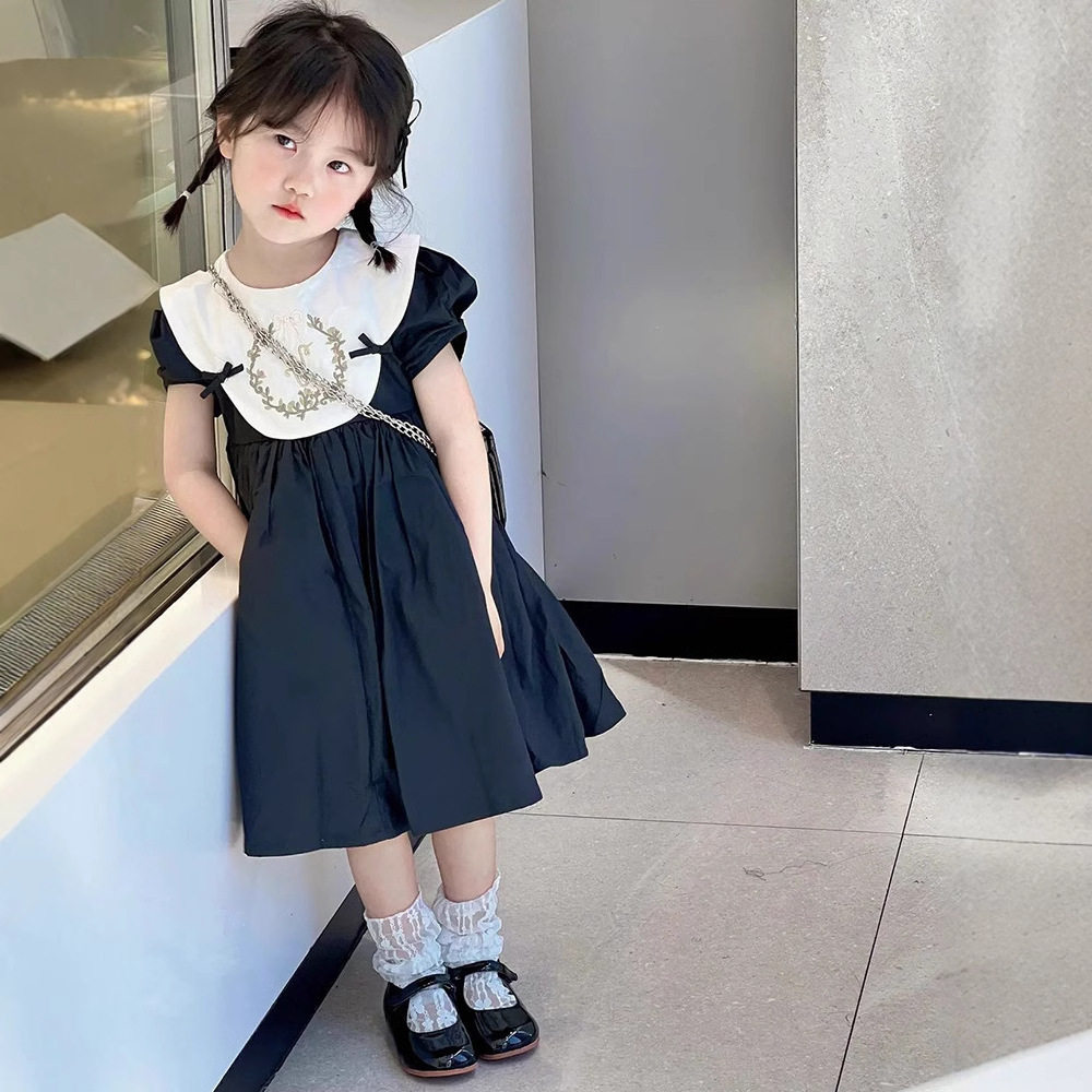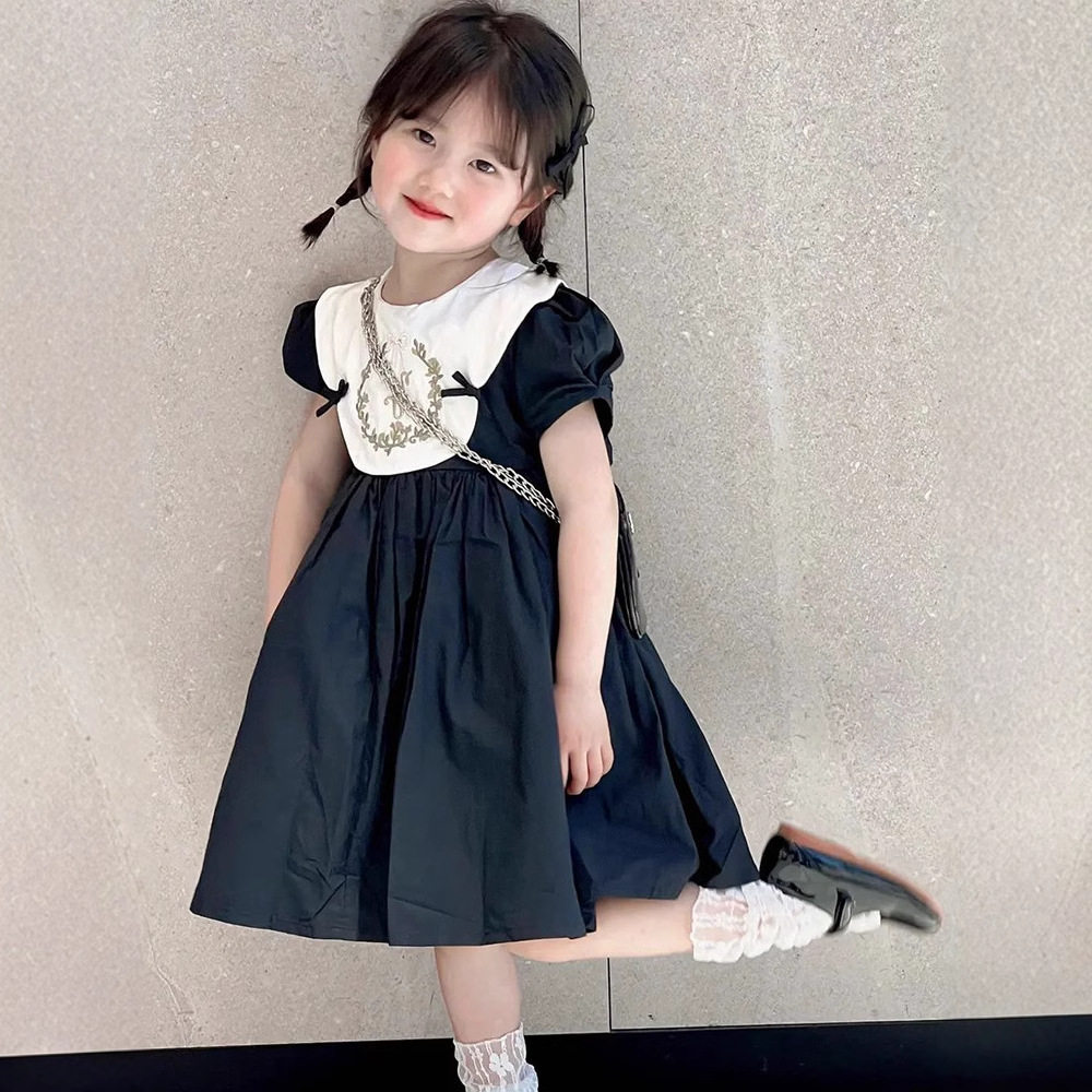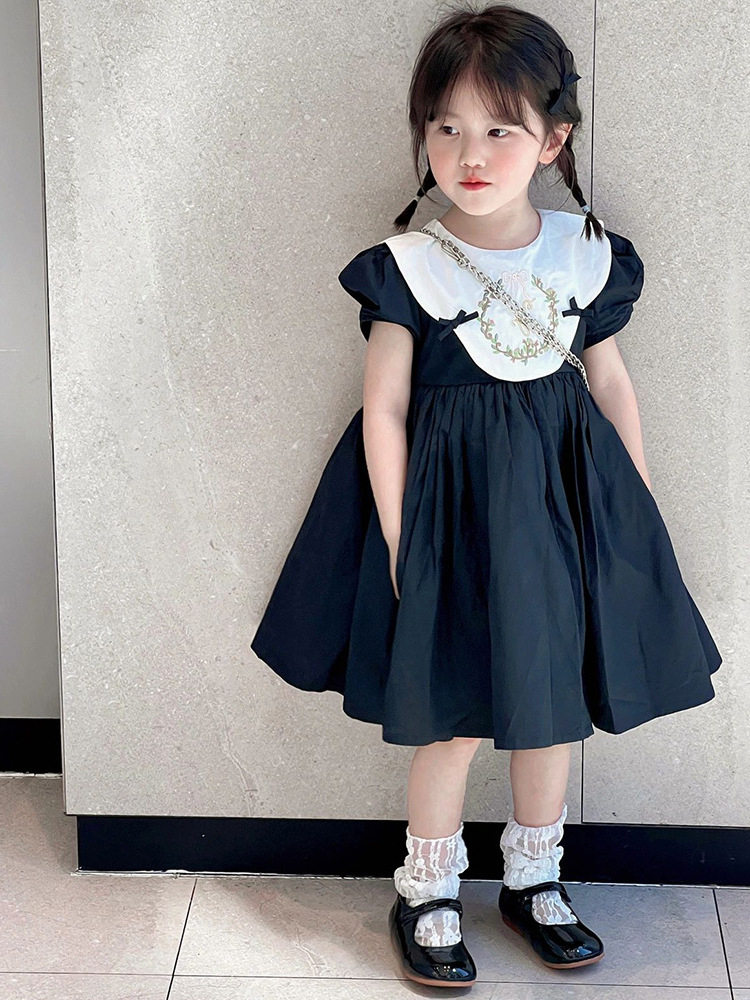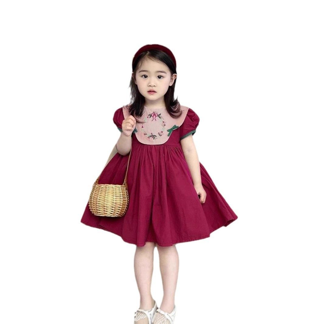 Girls Dress Summer New Fashion Retro Puff Sleeve Embroidered Princess Dress Small, Medium and Old Children