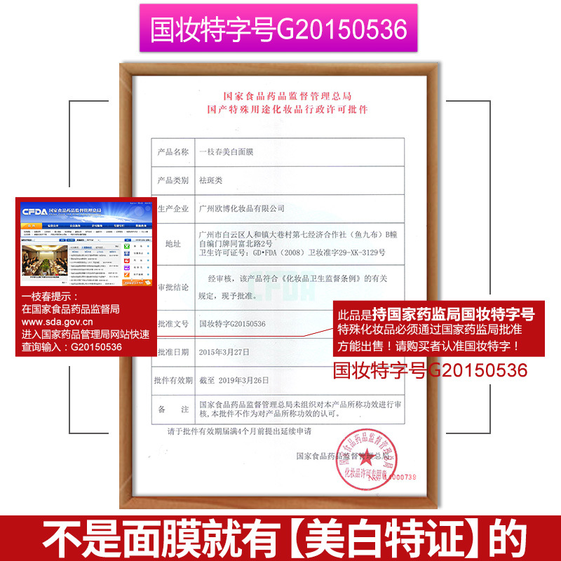 Special purpose cosmetics certificate numberNational makeup special character g20150536货号2NO.XXM13668 12104 6999 9372