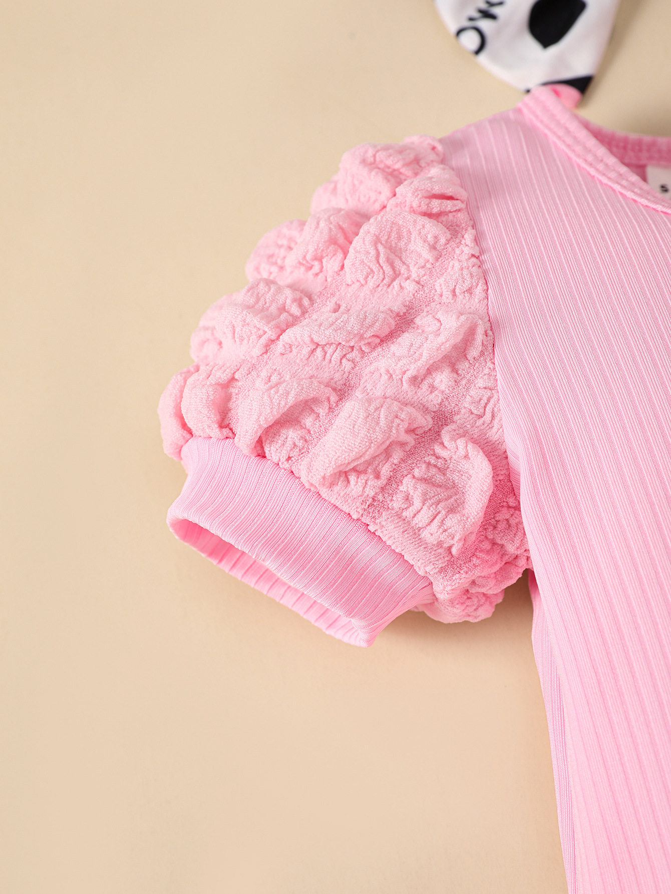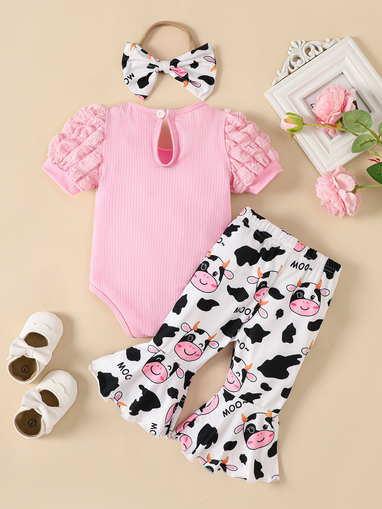baby girl summer puff-sleeved hoodie, flared trousers and hair accessory set