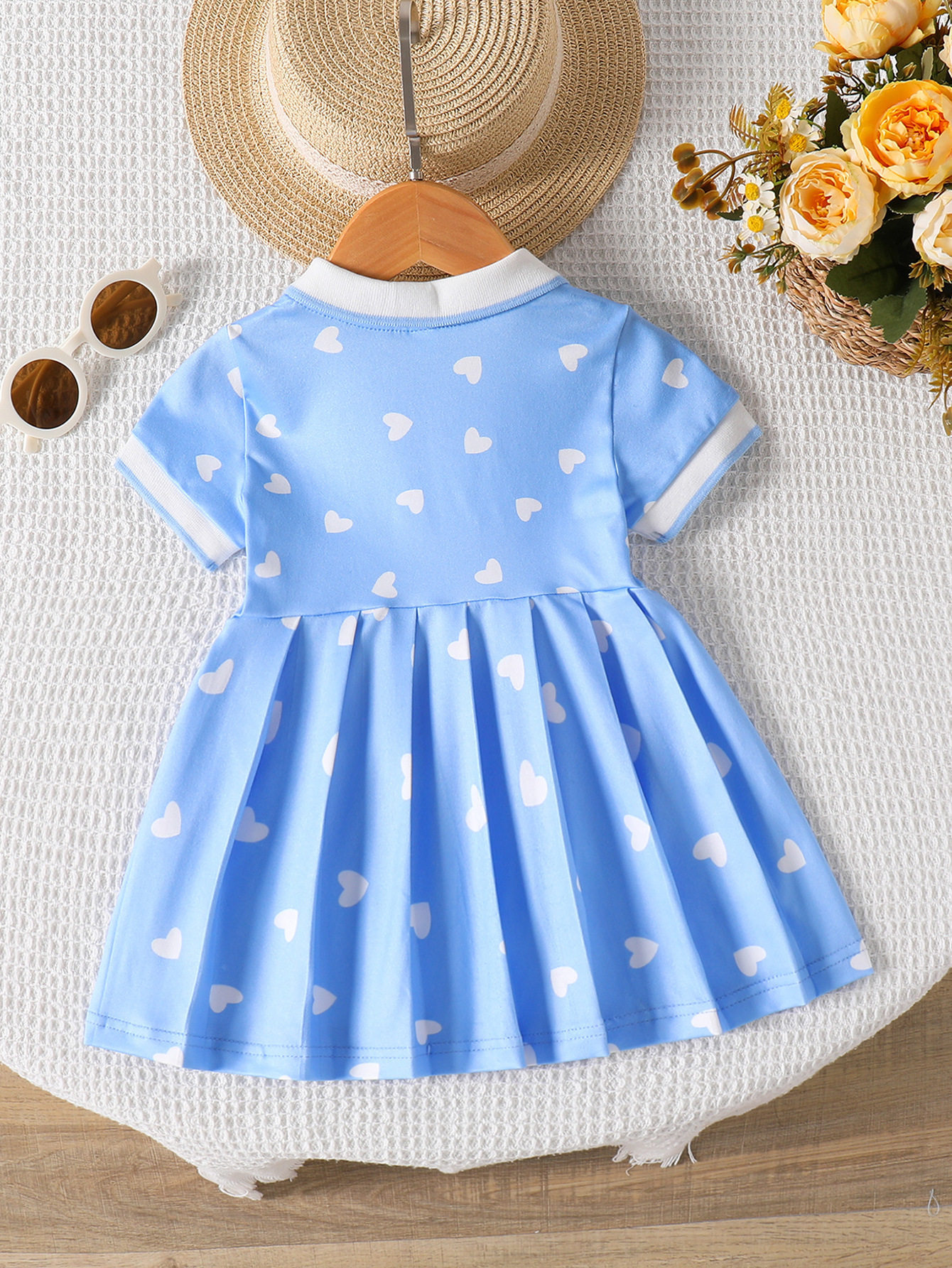 baby girl summer style lapel love printed pleated waist short-sleeved dress