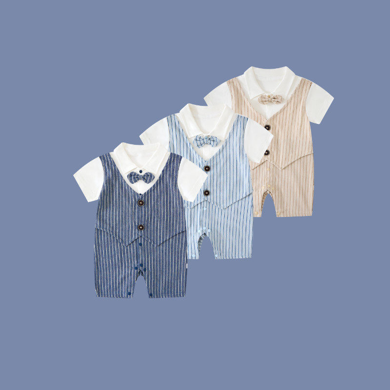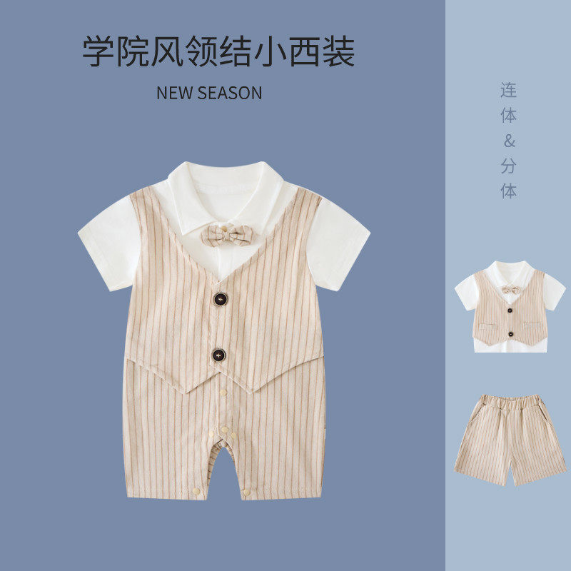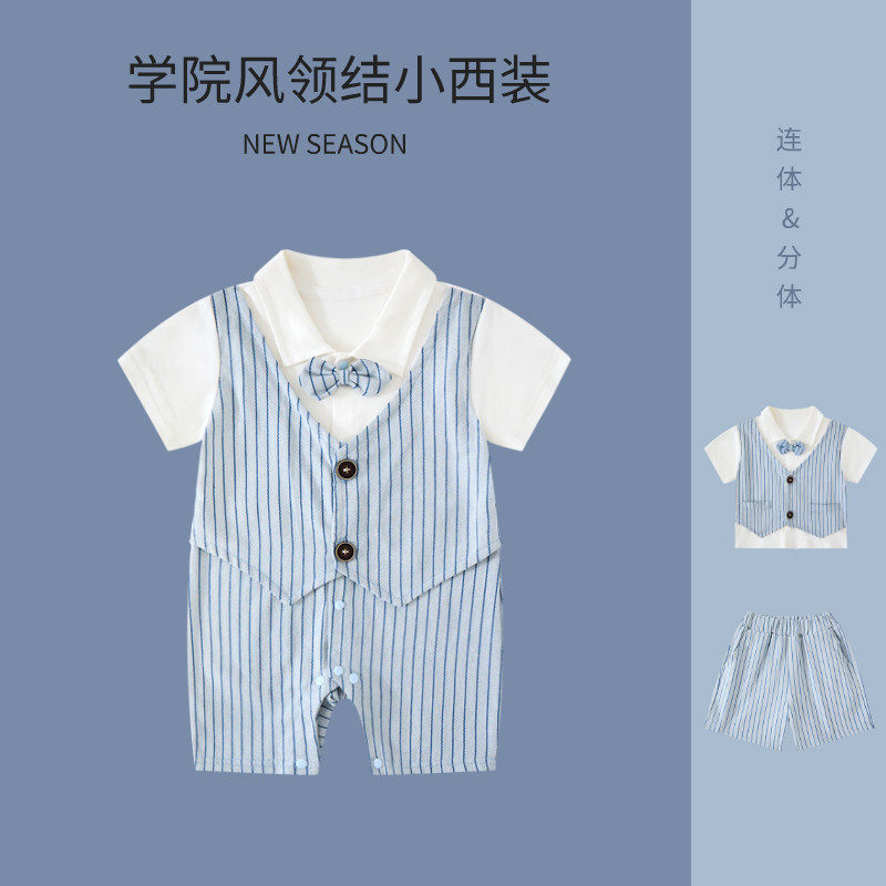 | 宝宝衣服 | 周岁婴儿连体衣夏季薄款翻领百天满月小西装百日宴绅士衣服婴儿服 | ||