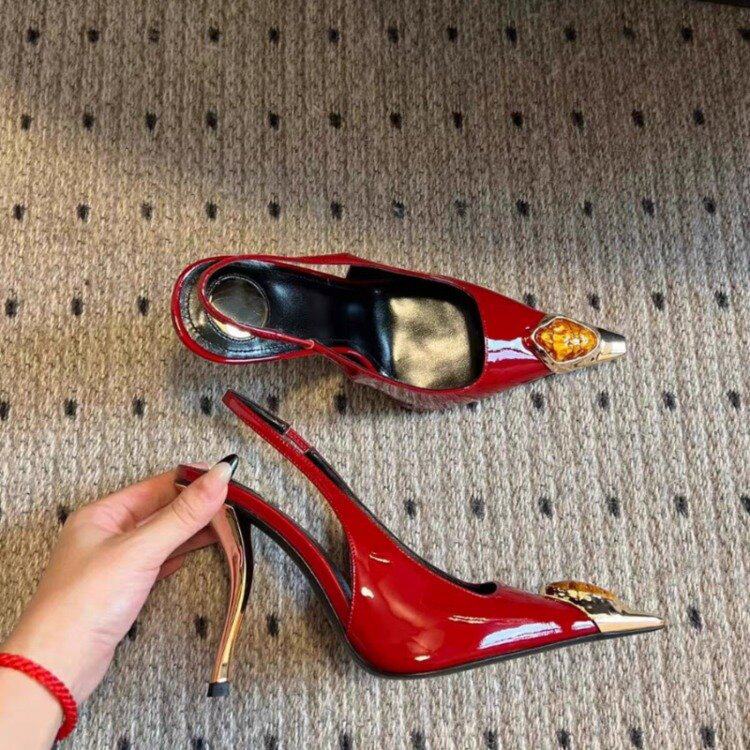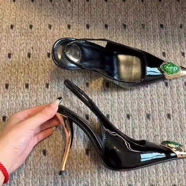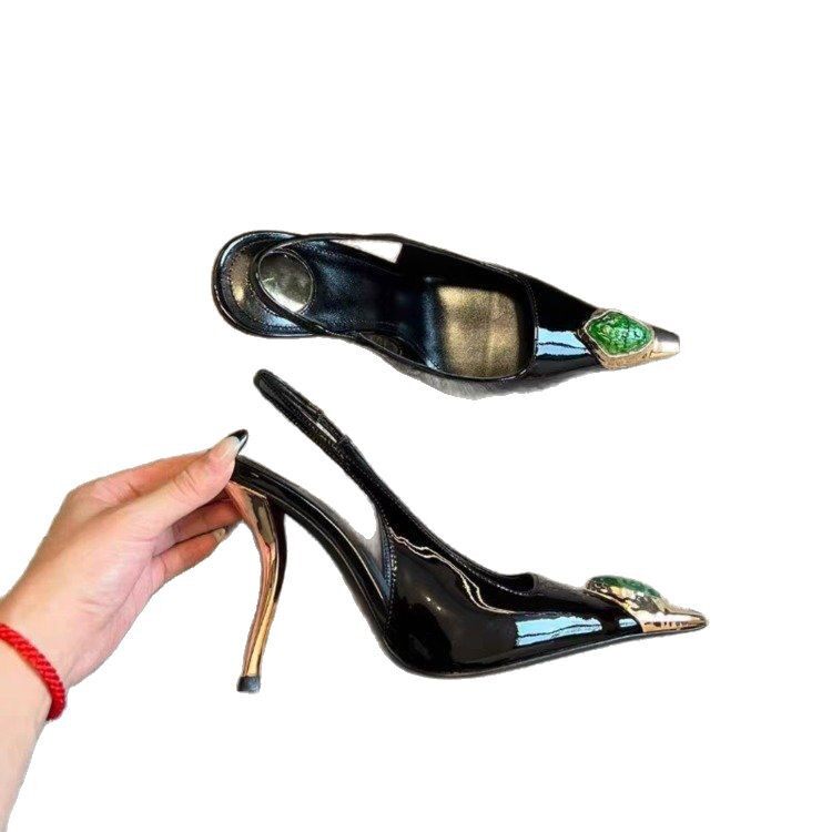 Beautiful pointed toe back empty high-heeled sandals sexy model banquet temperament high-heeled shoes for women