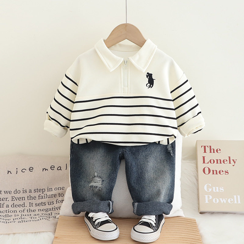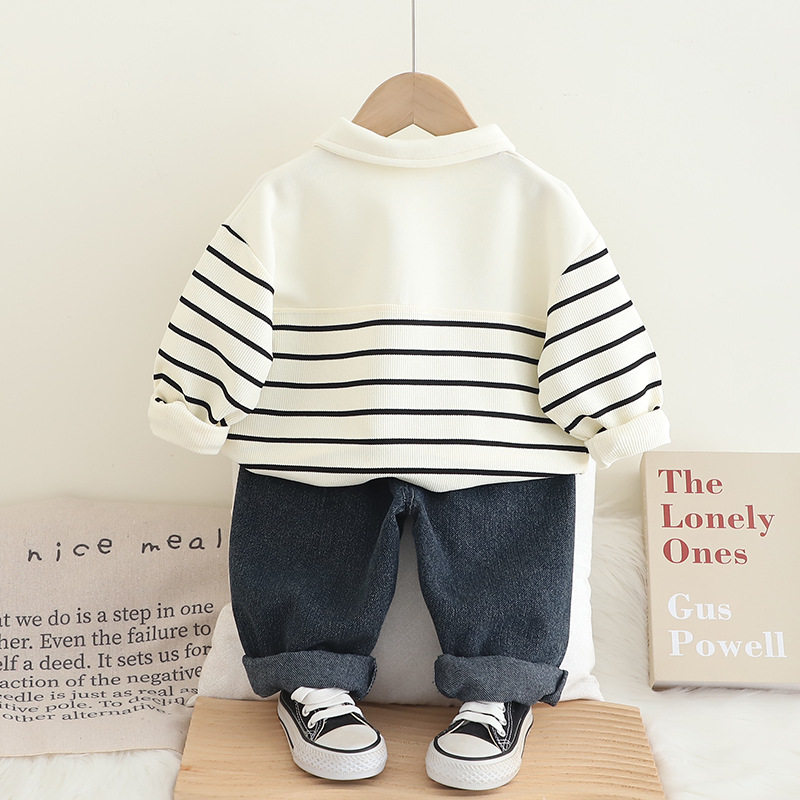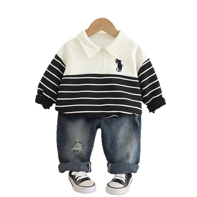 Boy Handsome Striped Sweater Two-piece Set Boys Loose Sportswear Spring Clothes