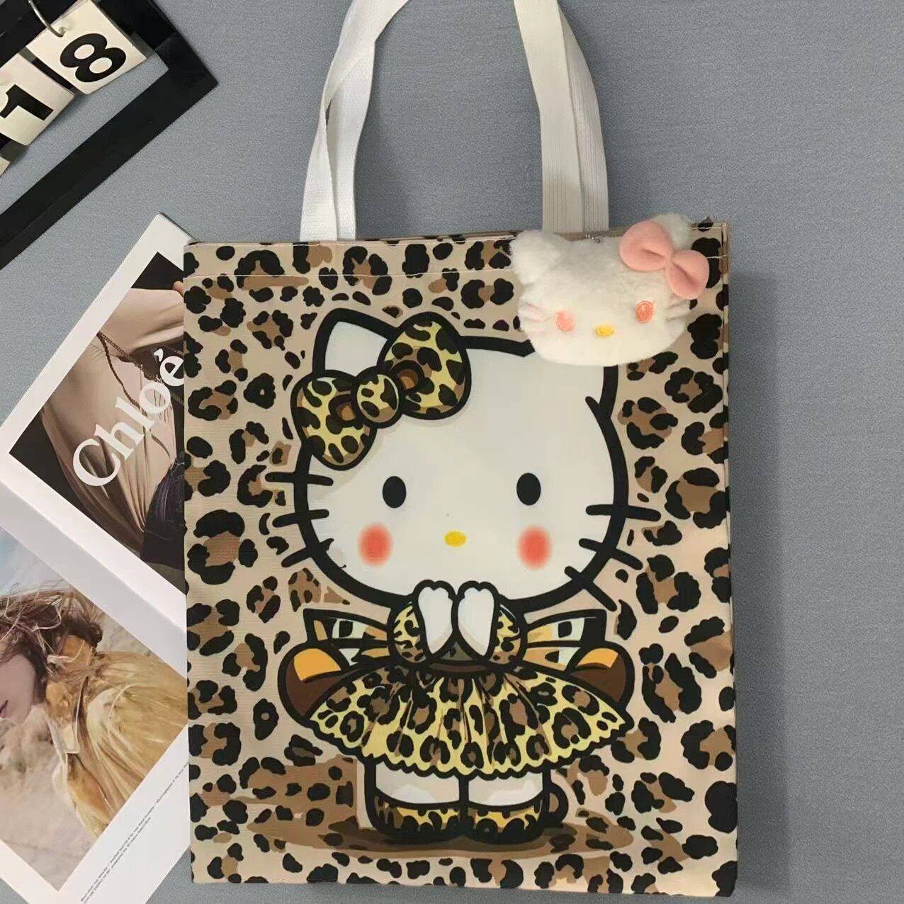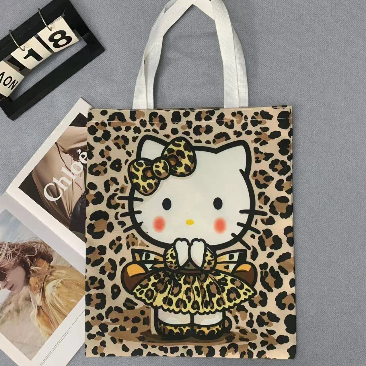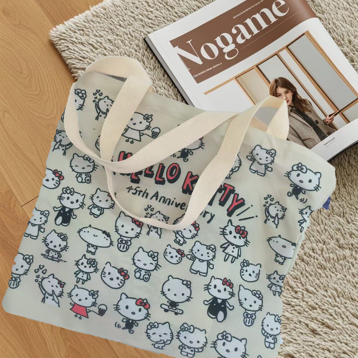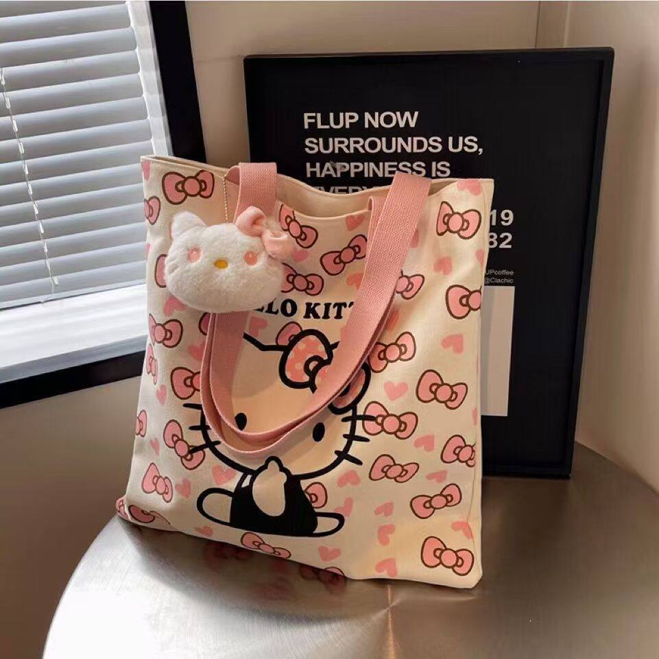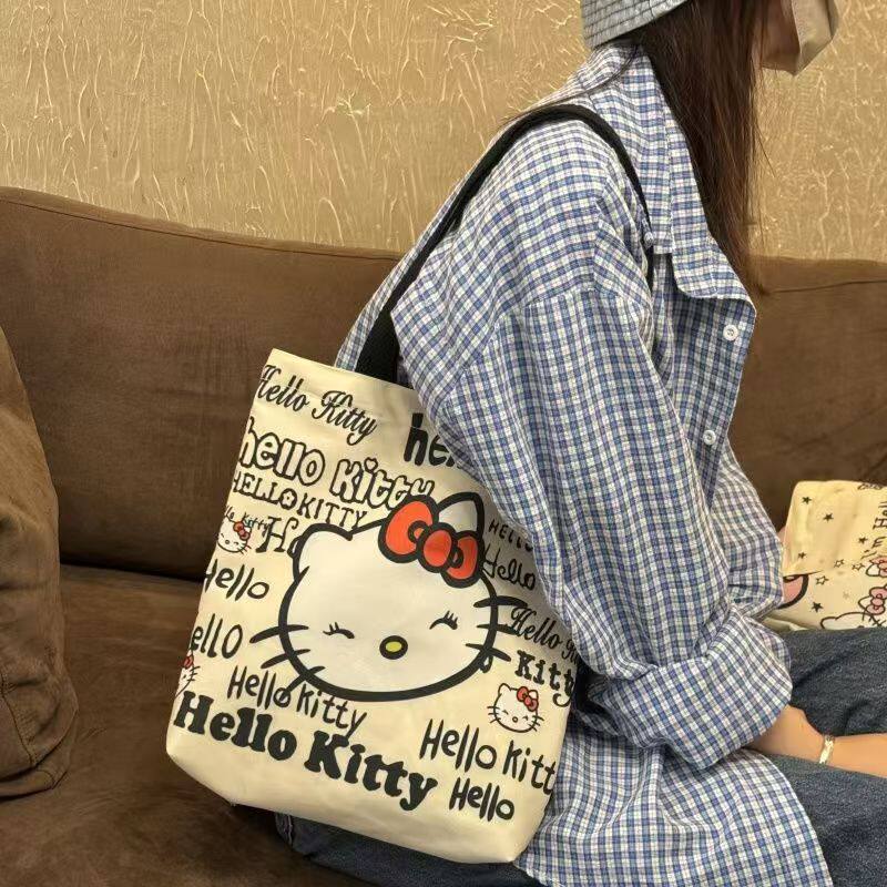 Cartoon KT Cat Canvas Bag ins Versatile Shoulder Bag Student Pack Book Class Tote Bag Cute Commuting Tote Bag