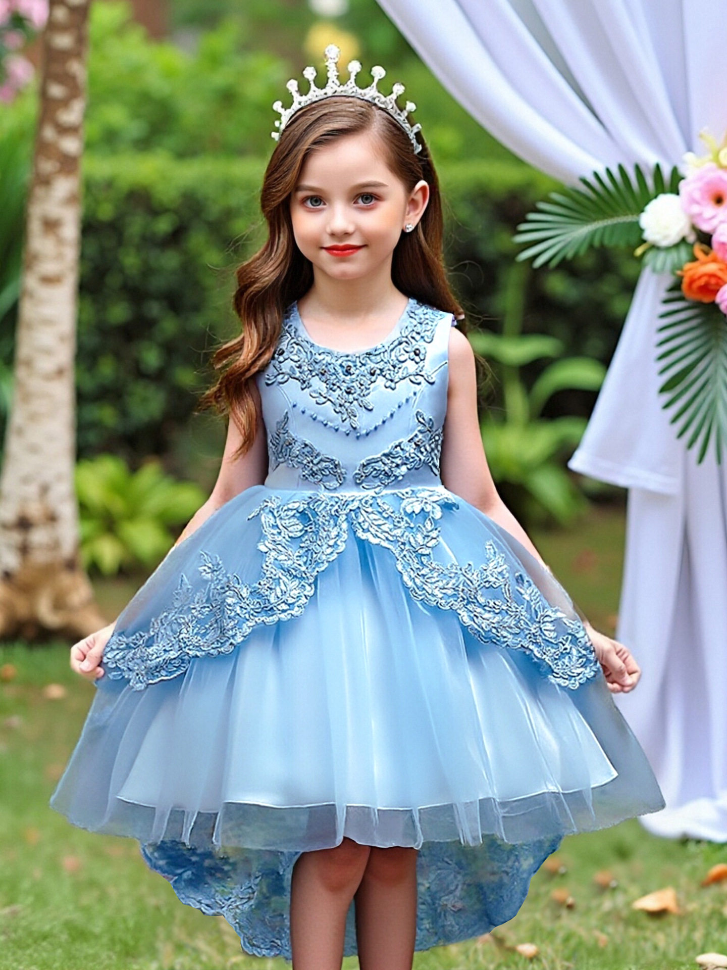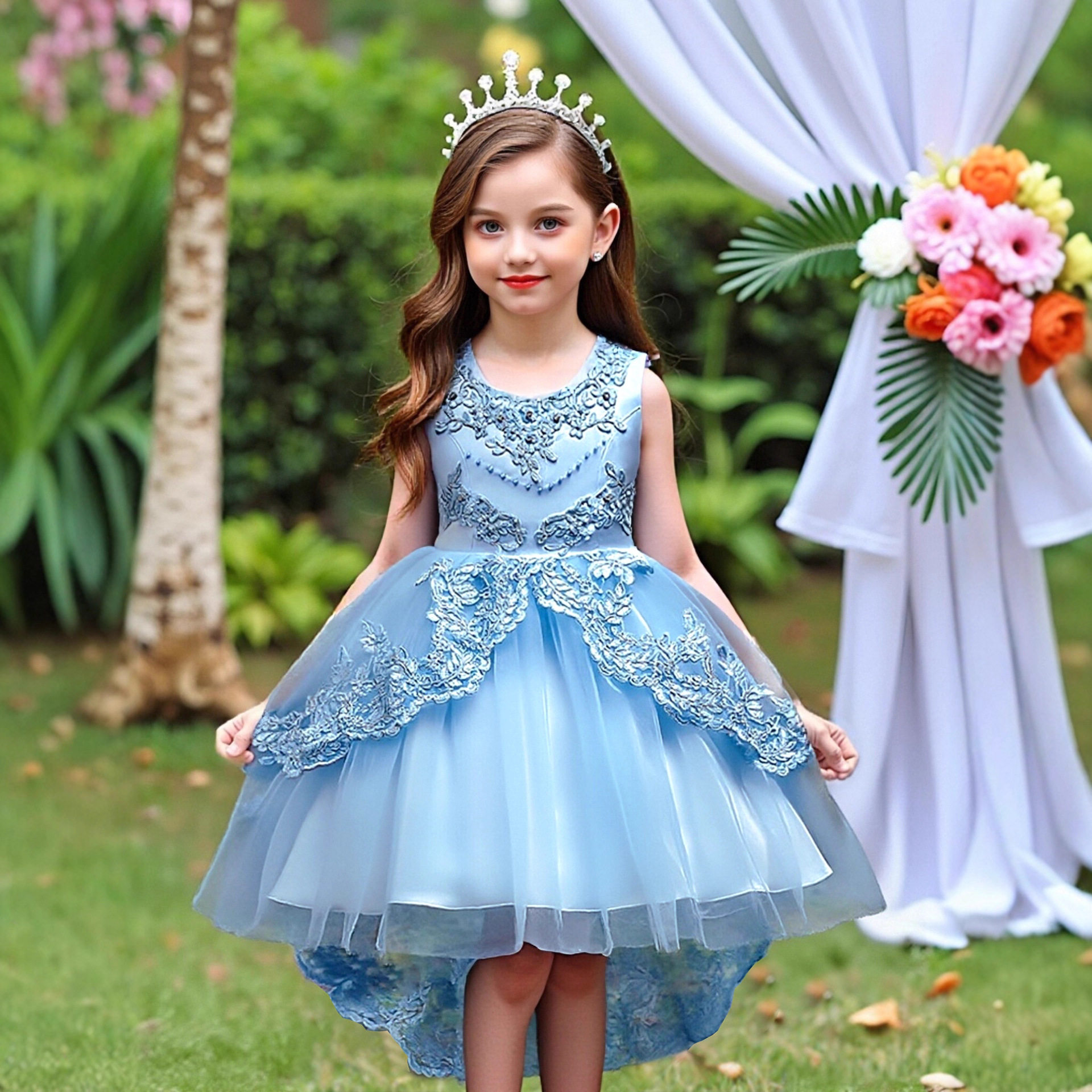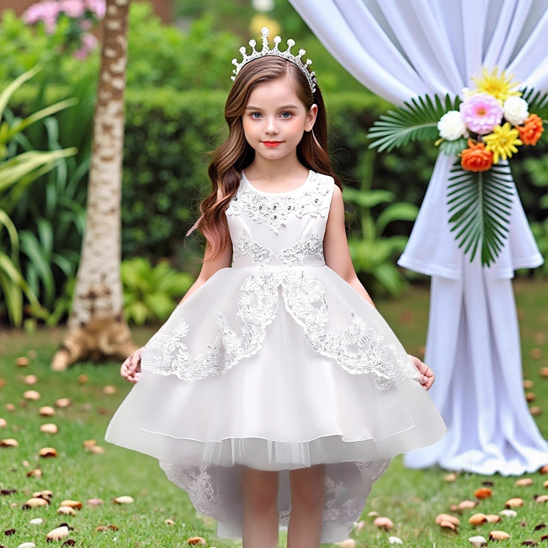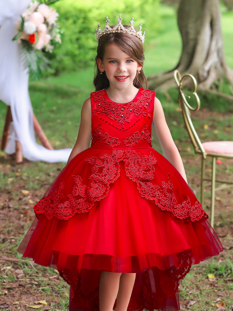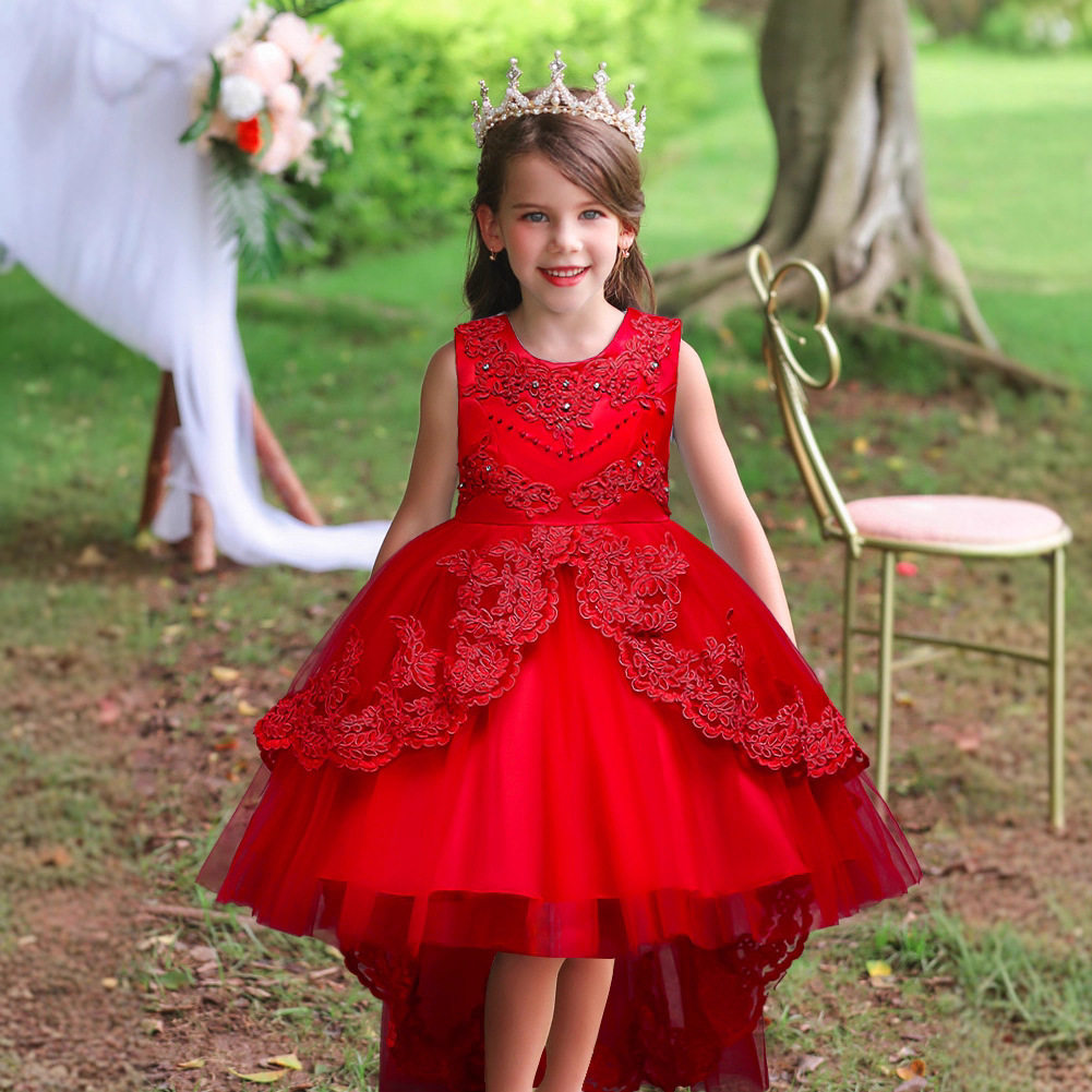 children's clothing children's dress princess dress embroidered girls lace dress flower girl trailing tutu skirt