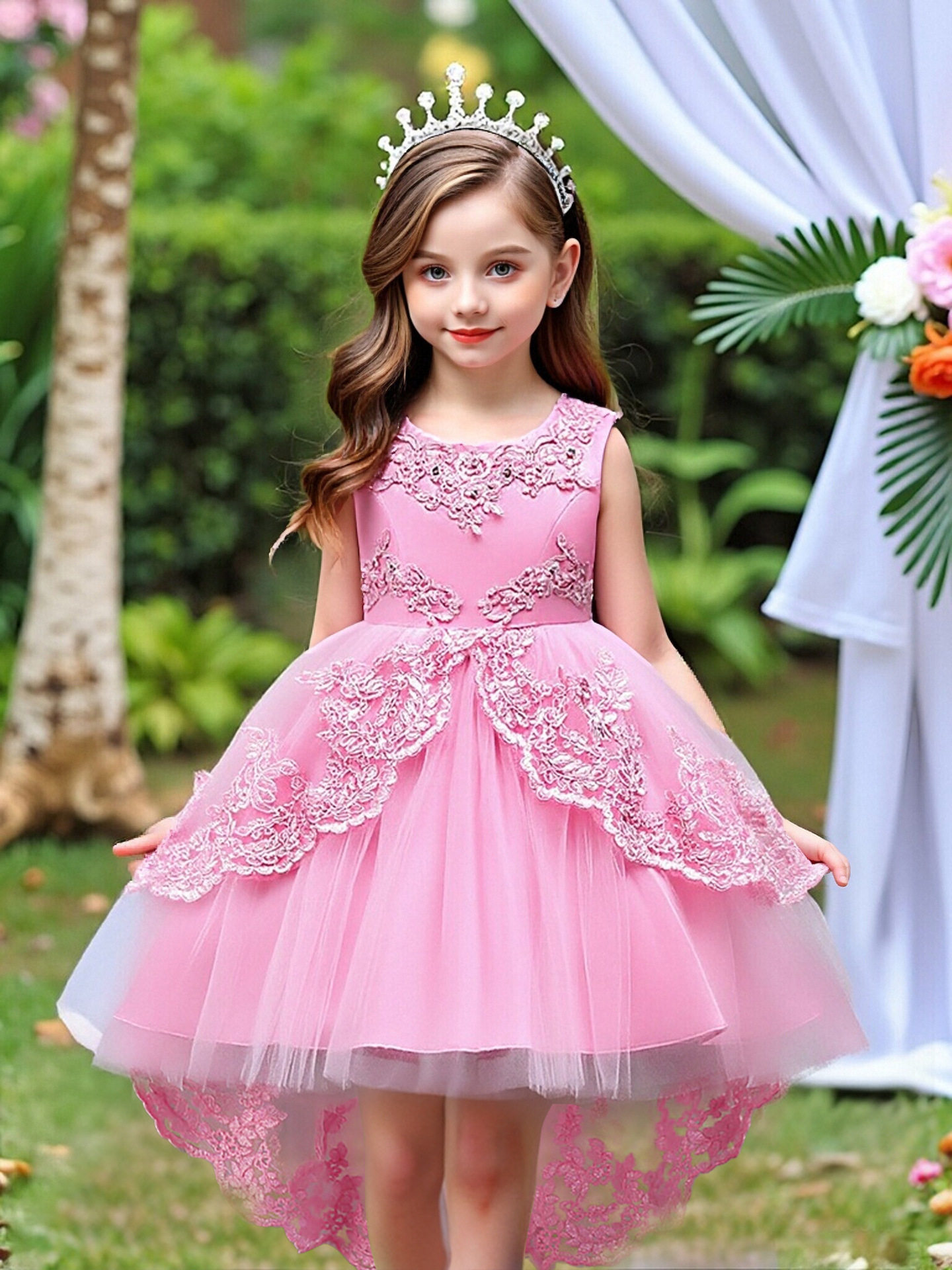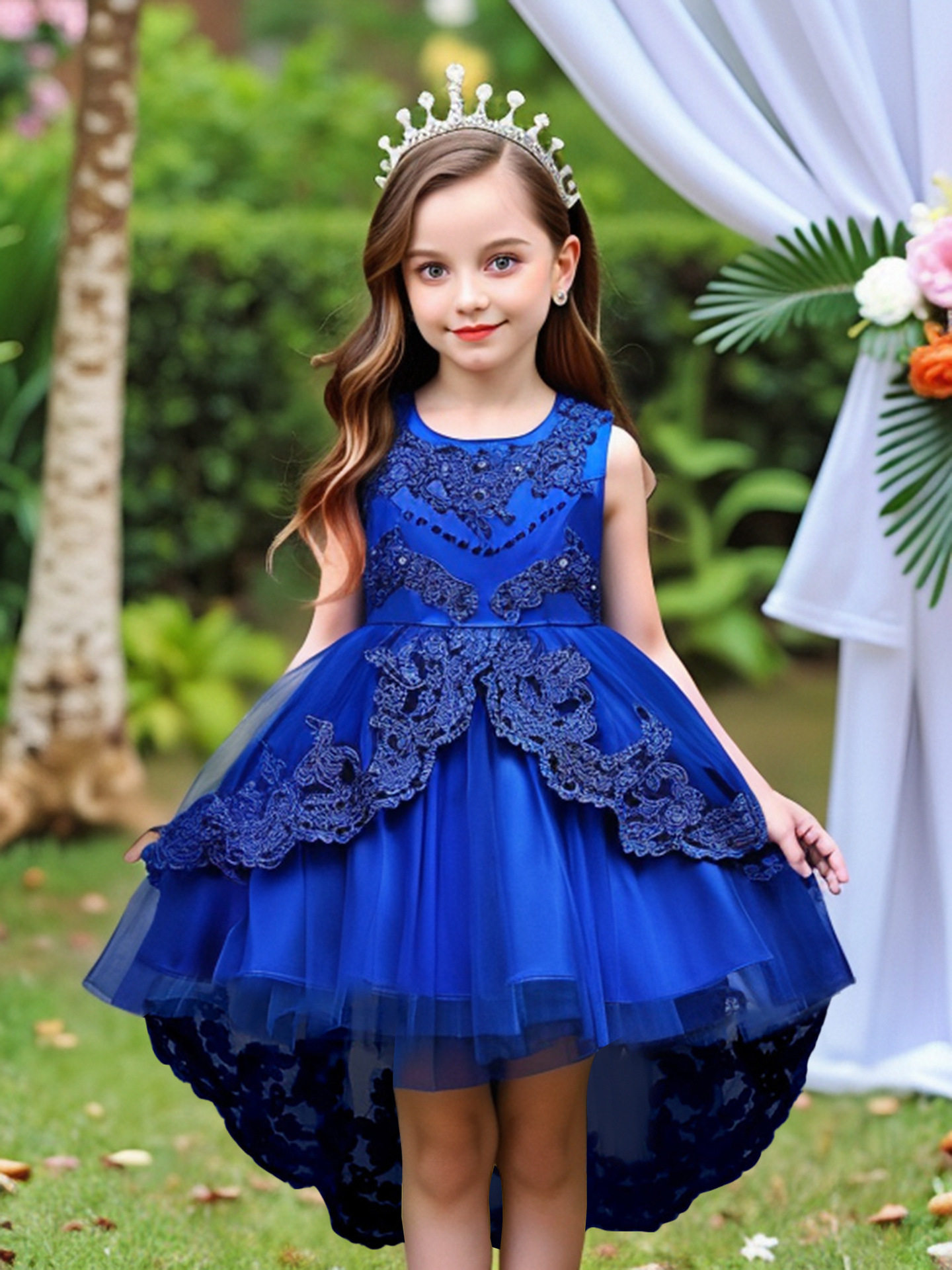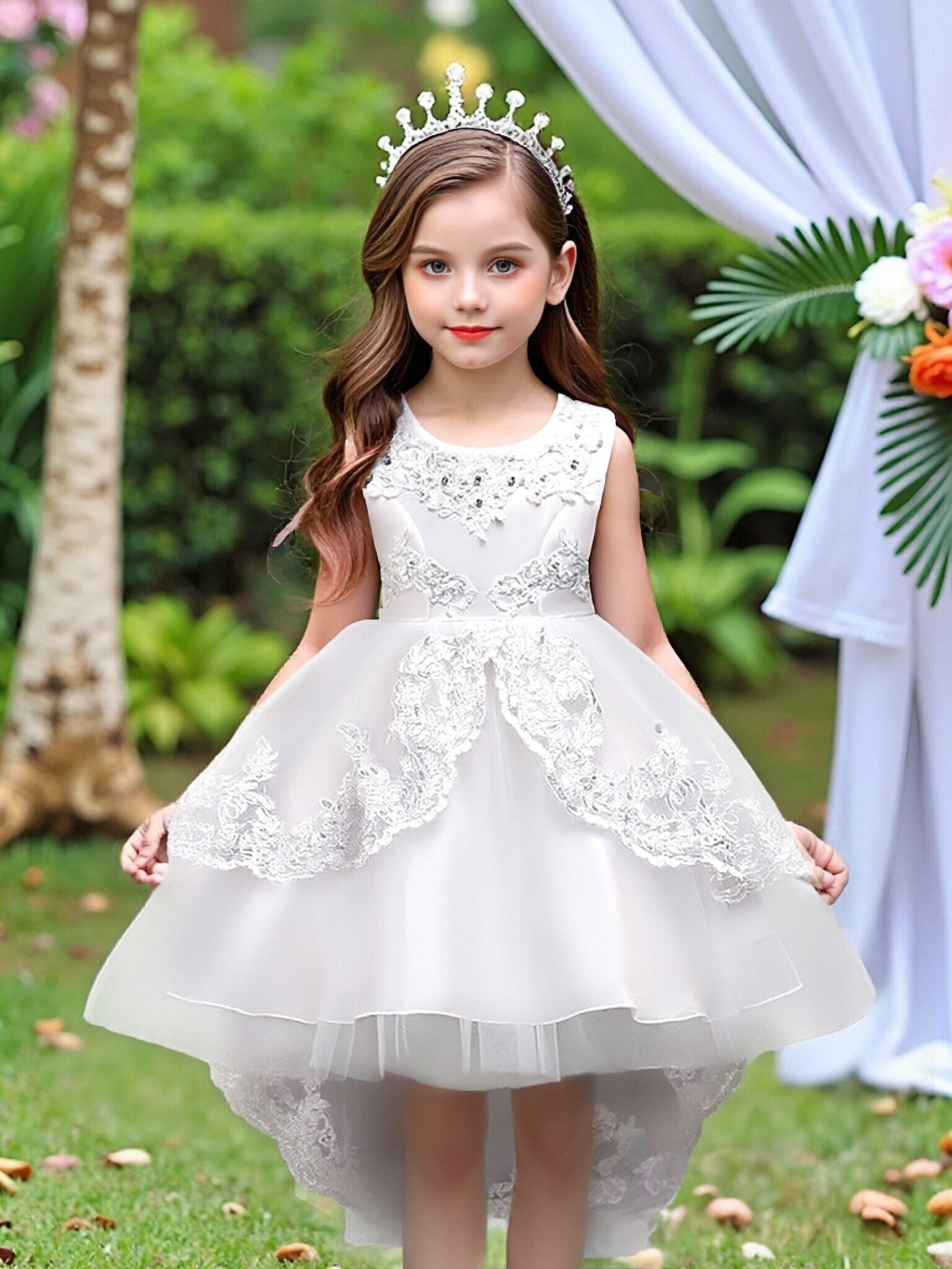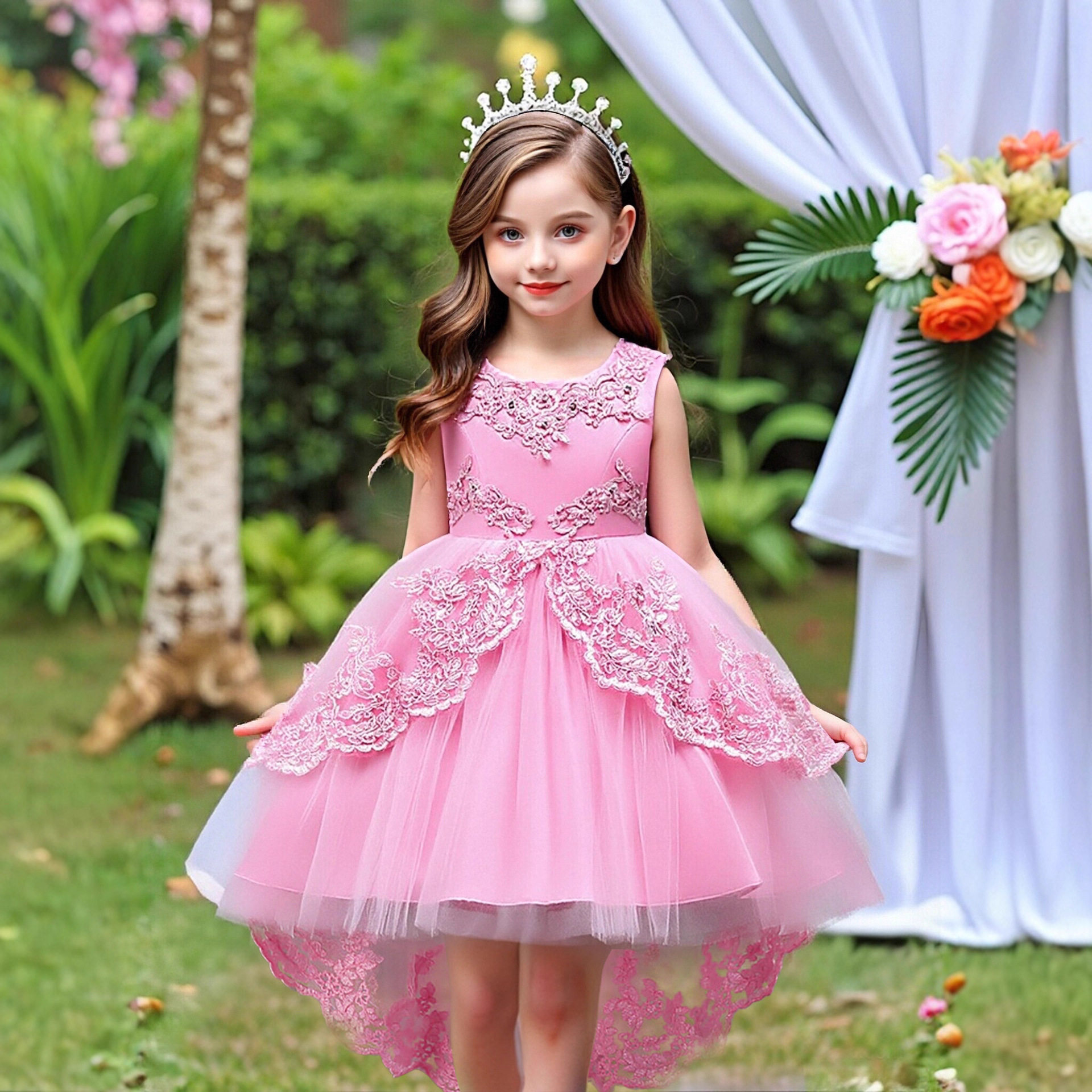 children's clothing children's dress princess dress embroidered girls lace dress flower girl trailing tutu skirt