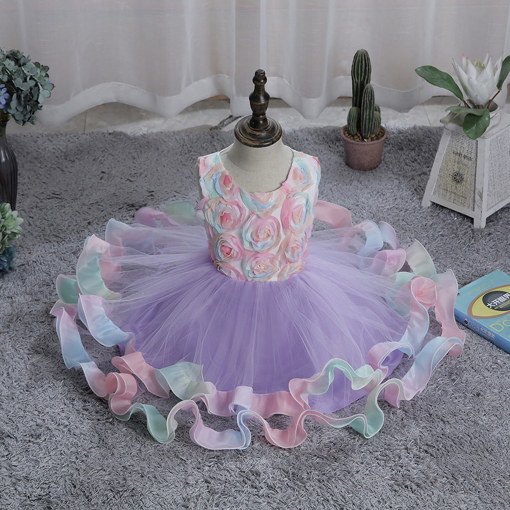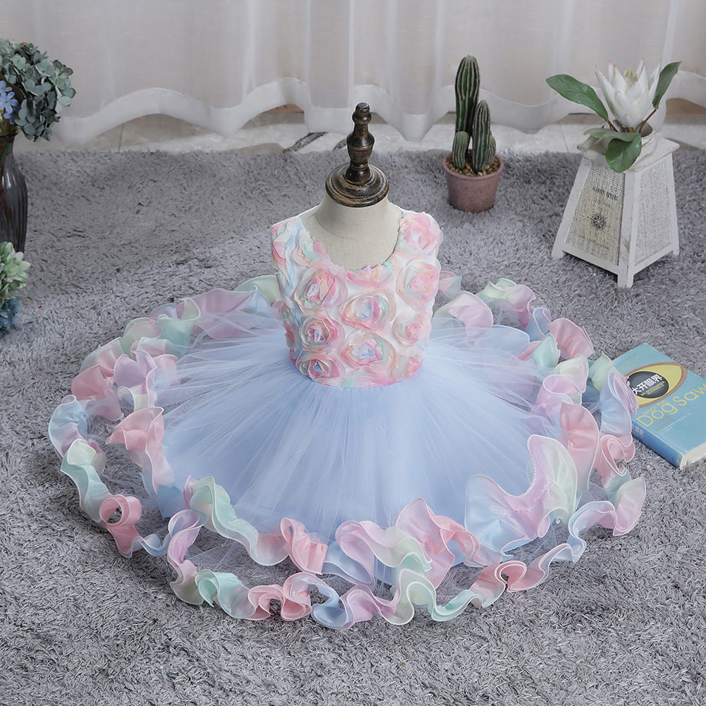children's dress princess dress small and medium-sized children three-dimensional flower dress flower girl wedding dress