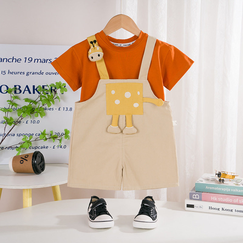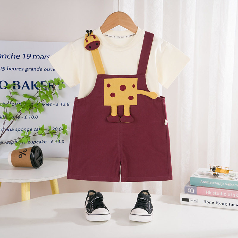 children's loose baby summer overalls for boys and girls, cartoon cute short-sleeved suit, two-piece set