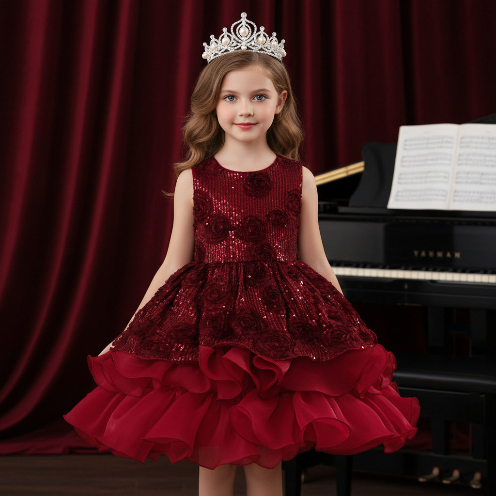 Christmas girl dress princess dress children's dress flower girl wedding dress sequin mesh cake tutu dress
