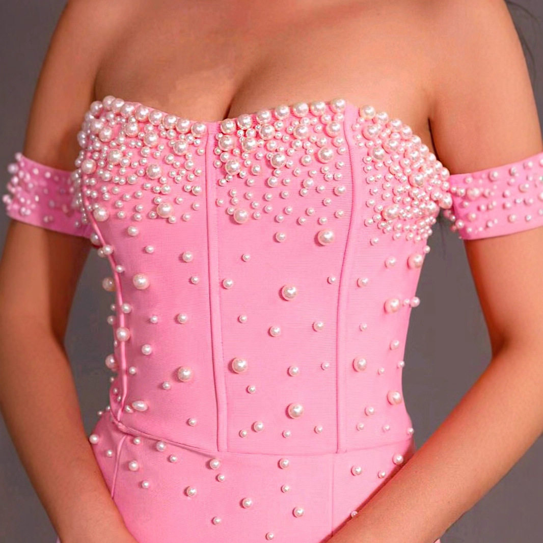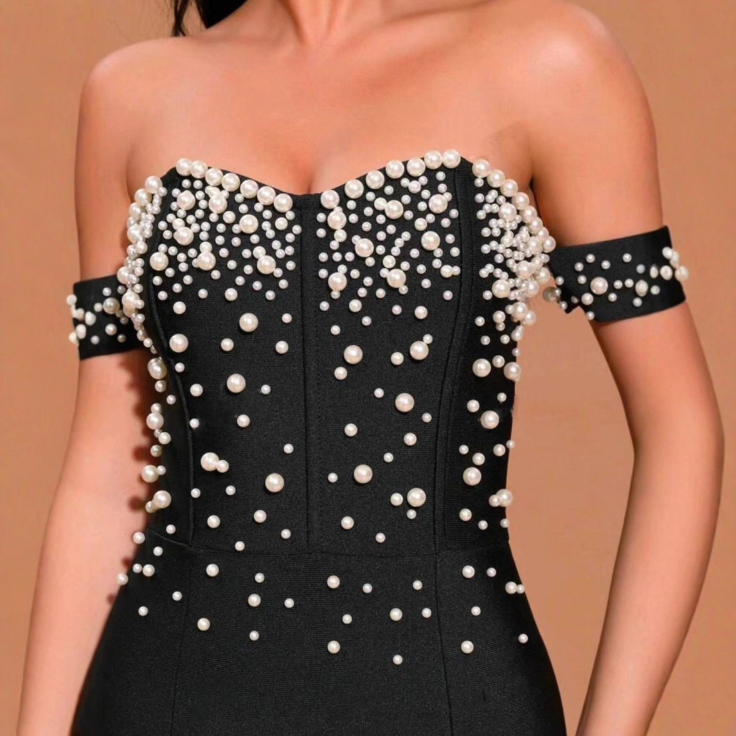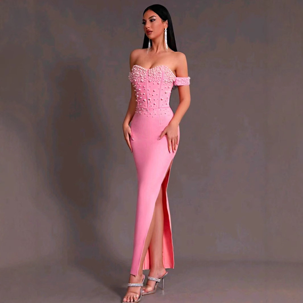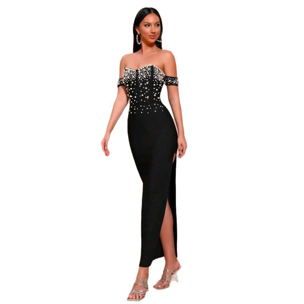 Christmas high-end banquet dress annual party slimming beaded bandage dress evening dress