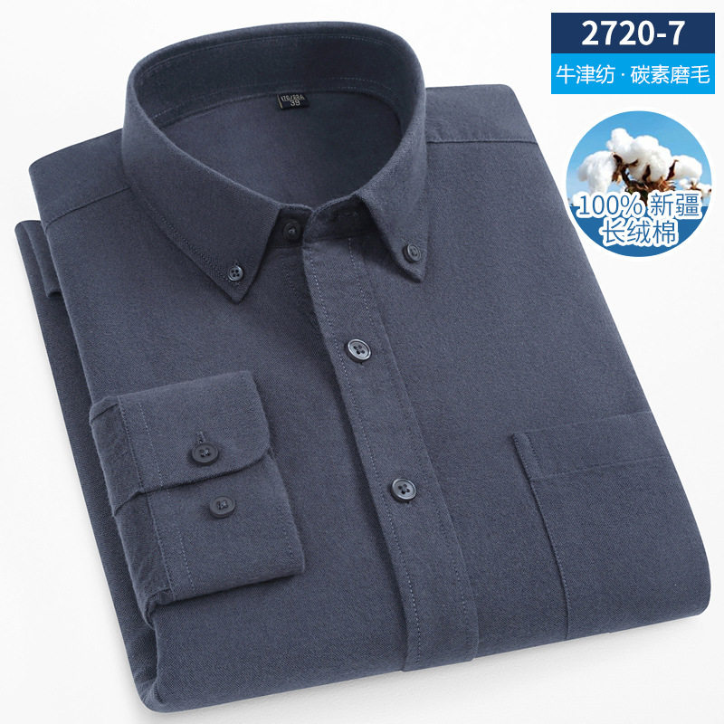 cotton double-sided brushed thickened spring, autumn and winter business oxford solid color long-sleeved shirt men's cotton shirt