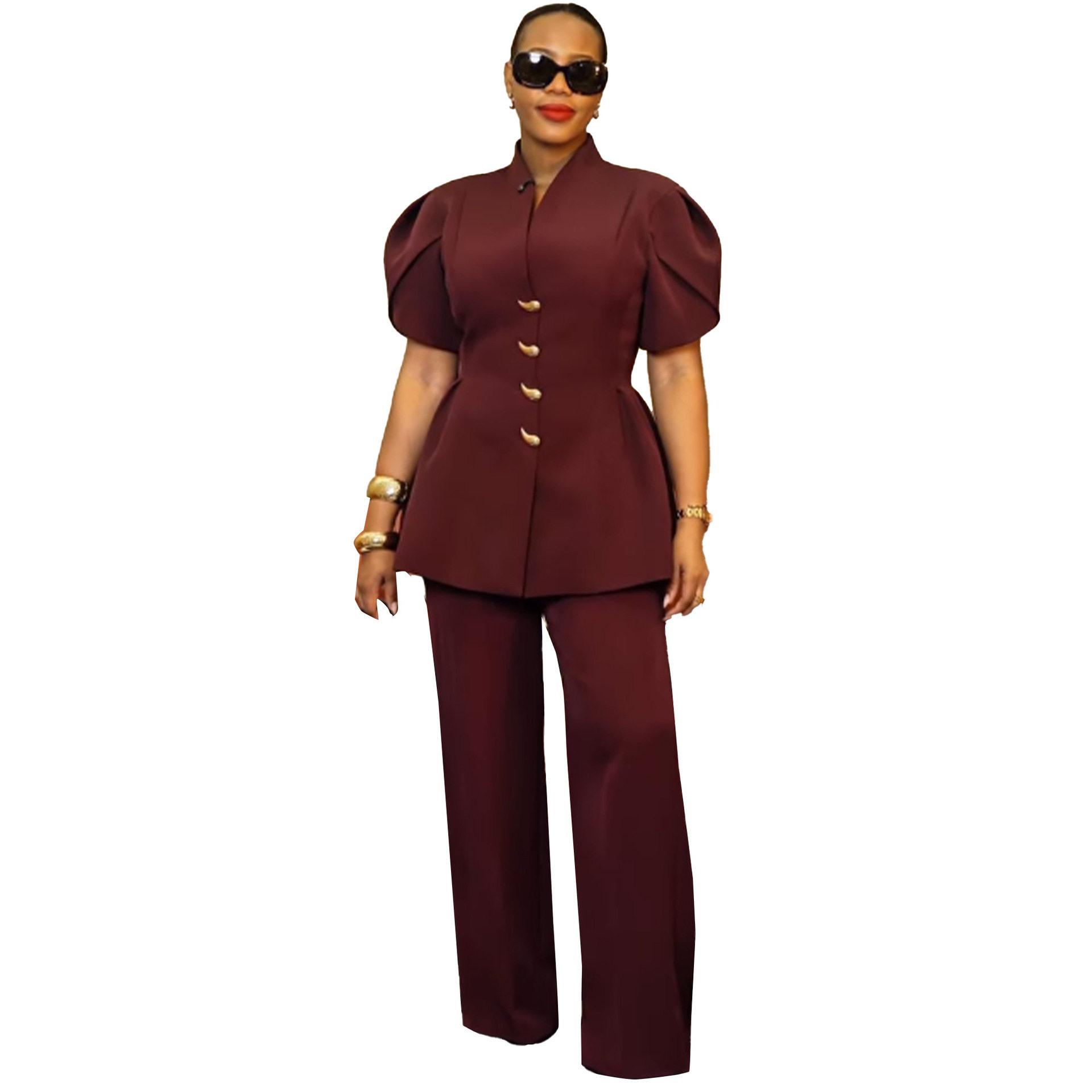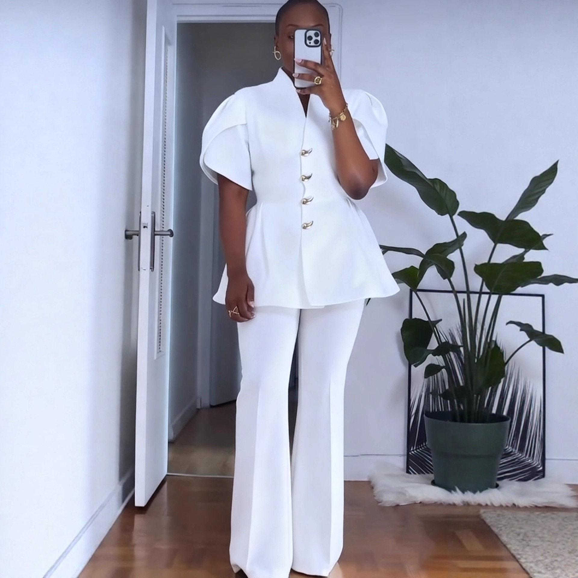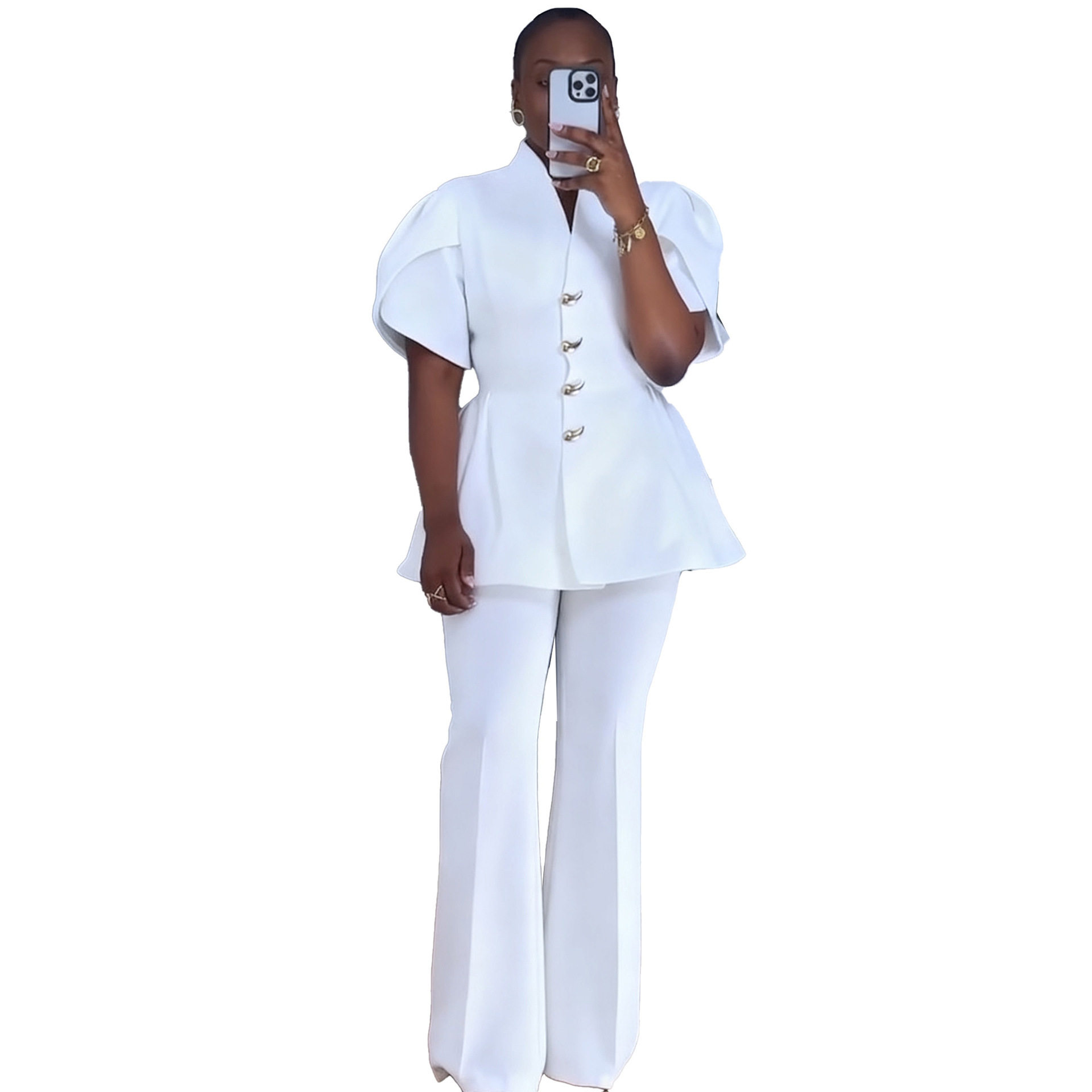 Elegant commuting bud sleeves special-shaped button two-piece set
