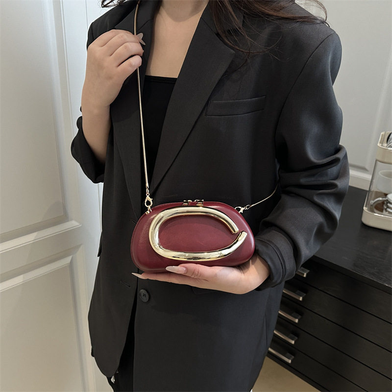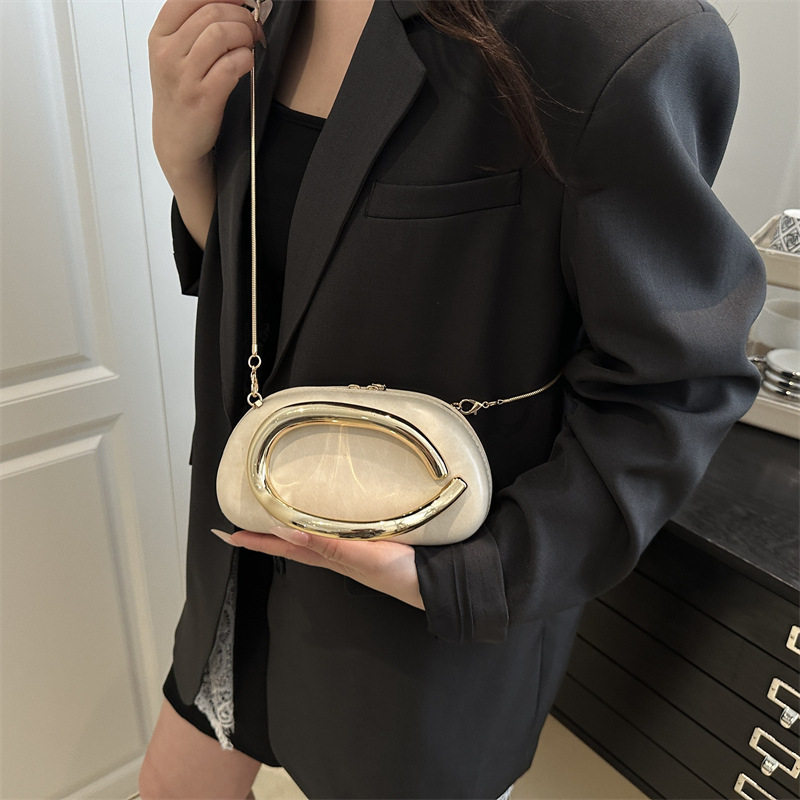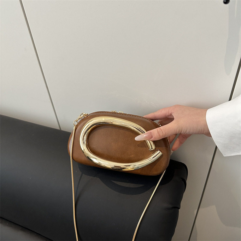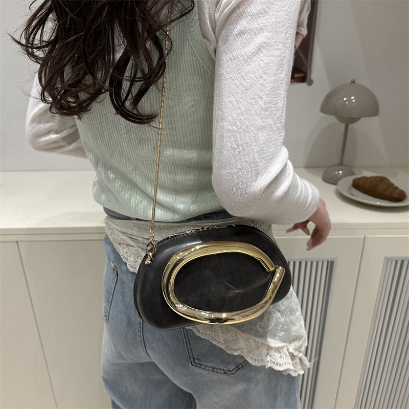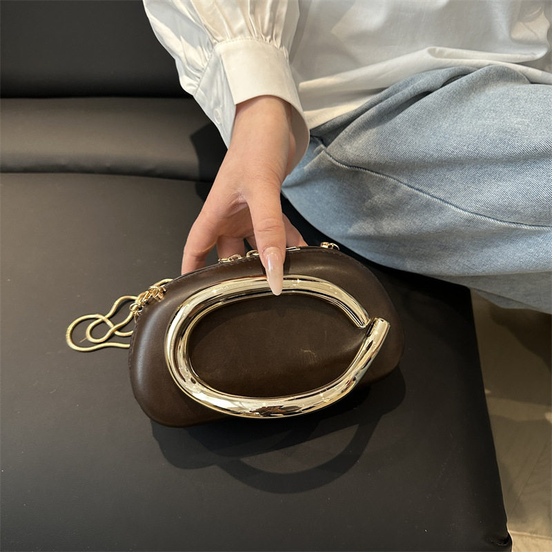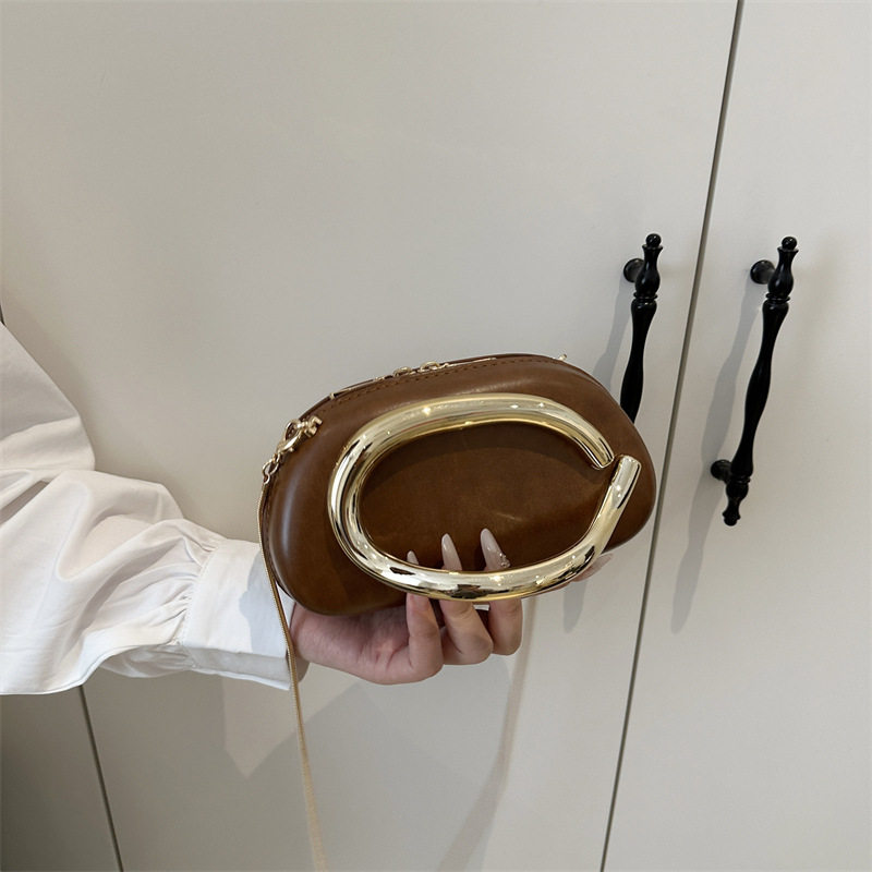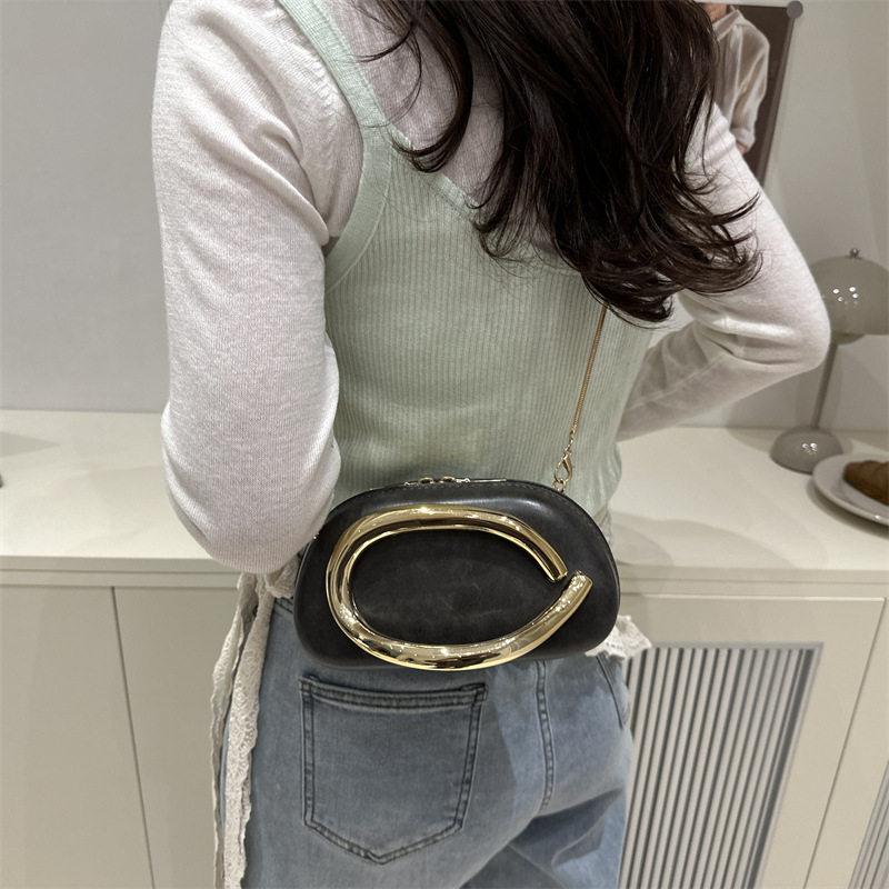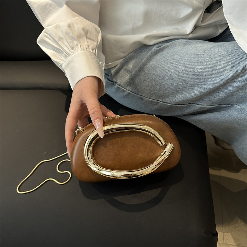 Evening bag best-selling classic round box hand-held mini bag retro metal handle chain shoulder crossbody bag