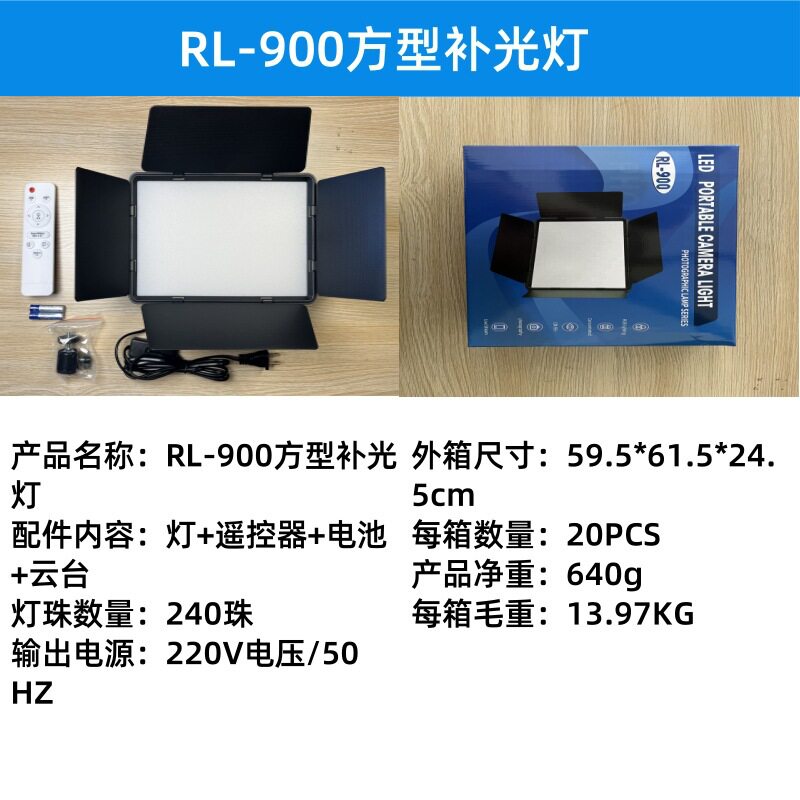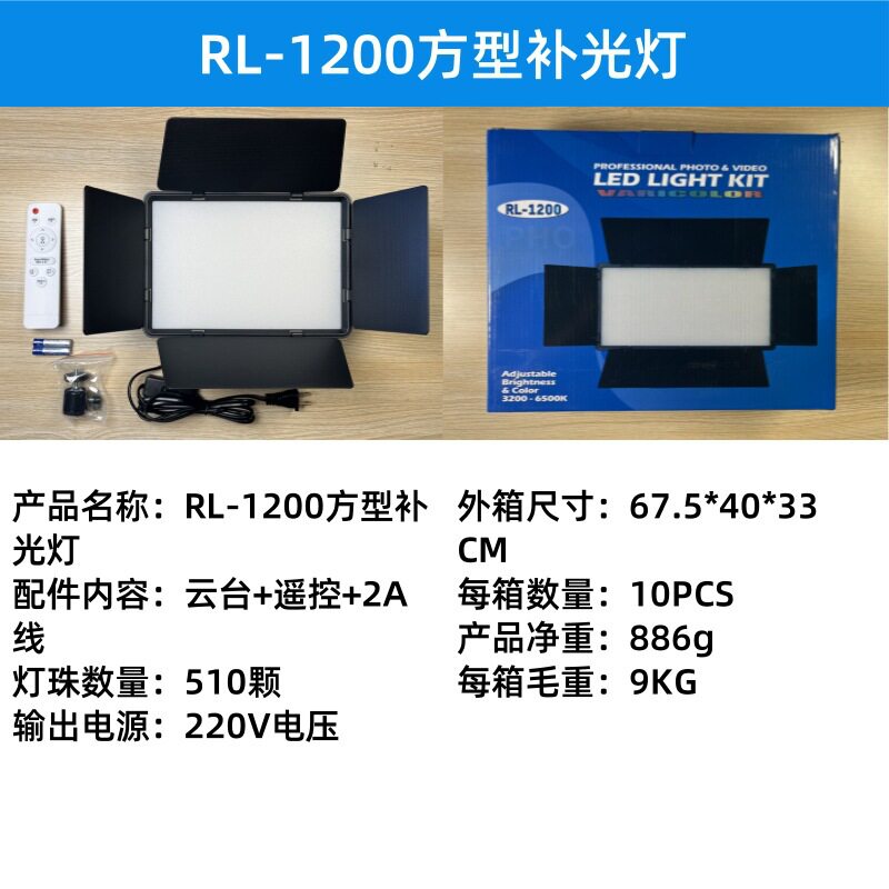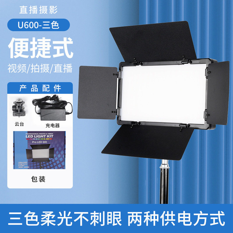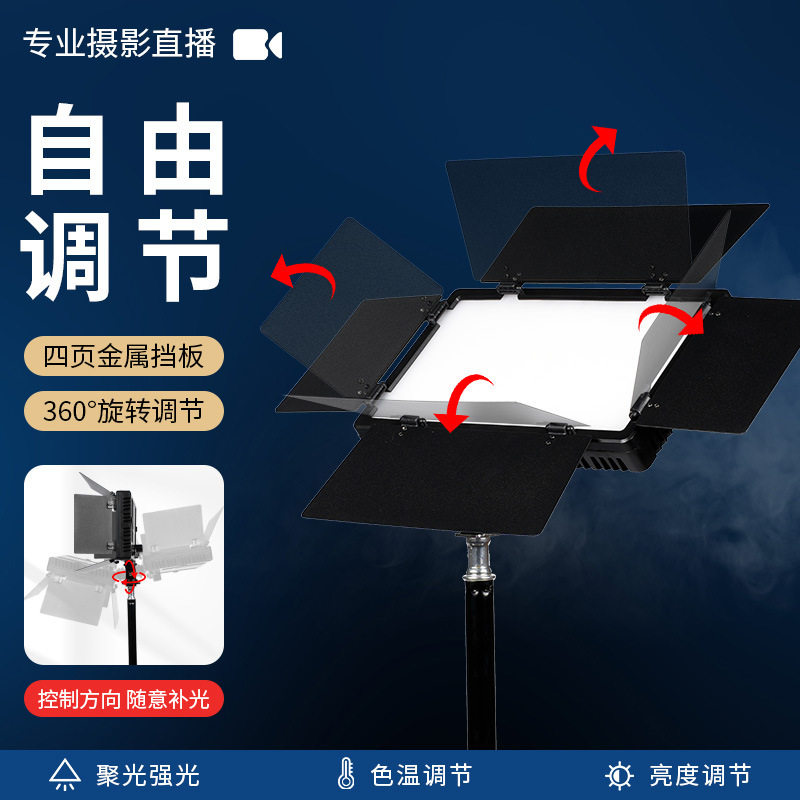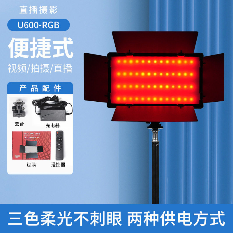 Four-leaf baffle fill light portable rechargeable live broadcast light three-color RGB shooting light square flat panel light