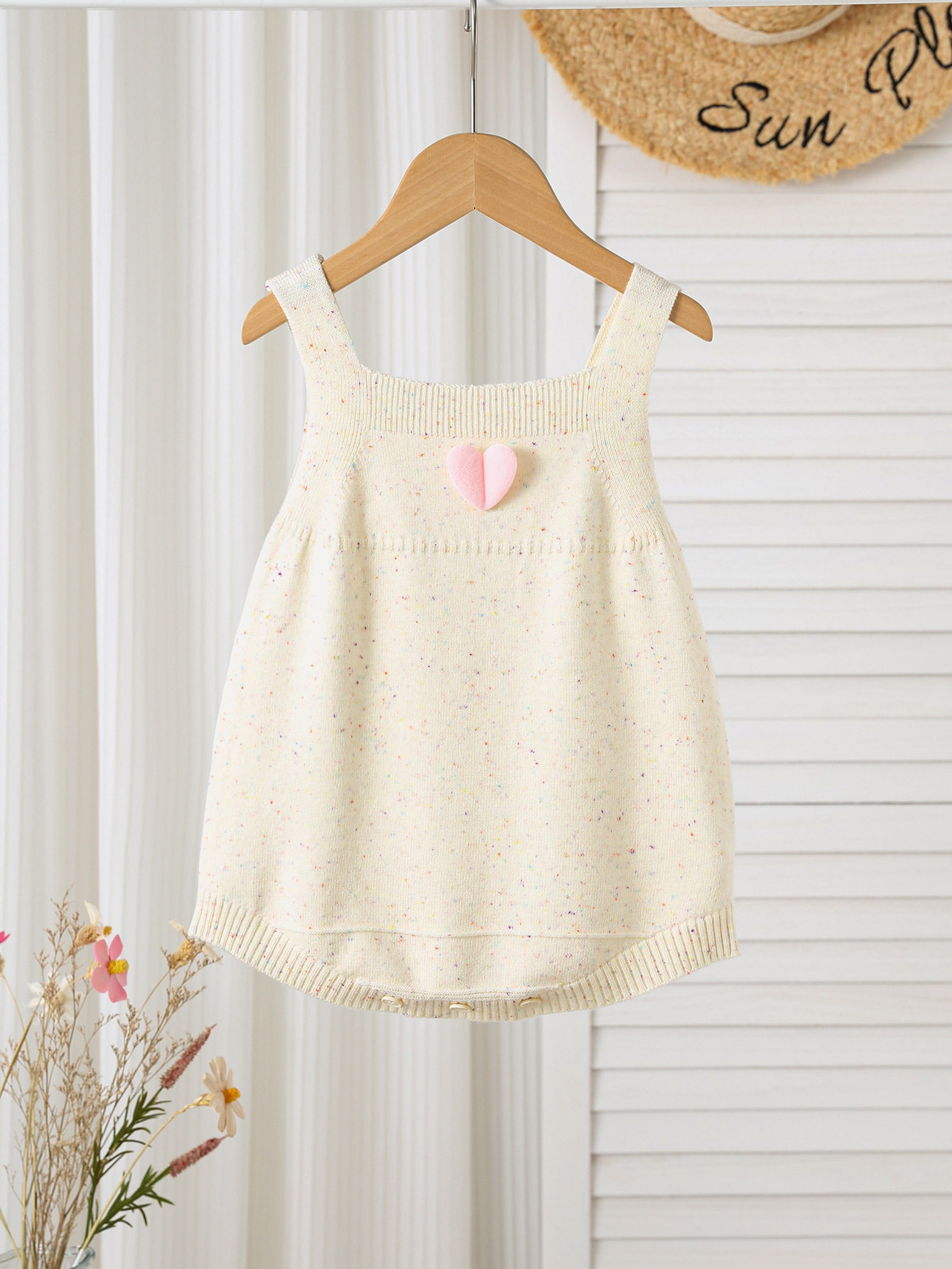 Girls Jumpsuit Western Style Little Love Baby Knitted Camisole Harness Vest Covered Fart Clothes
