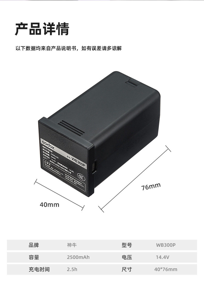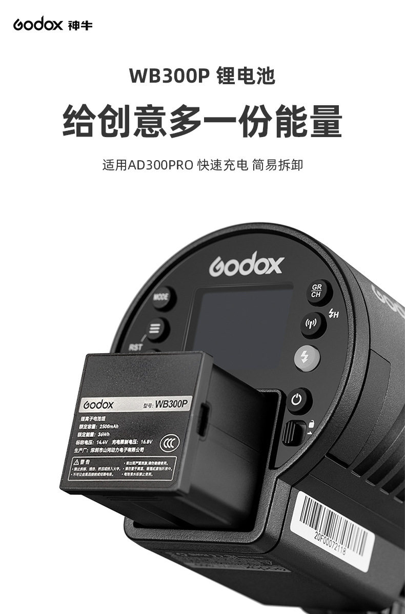 Godox AD300pro outdoor shooting light accessories lithium battery WB300P large capacity 2500mAh fast charging