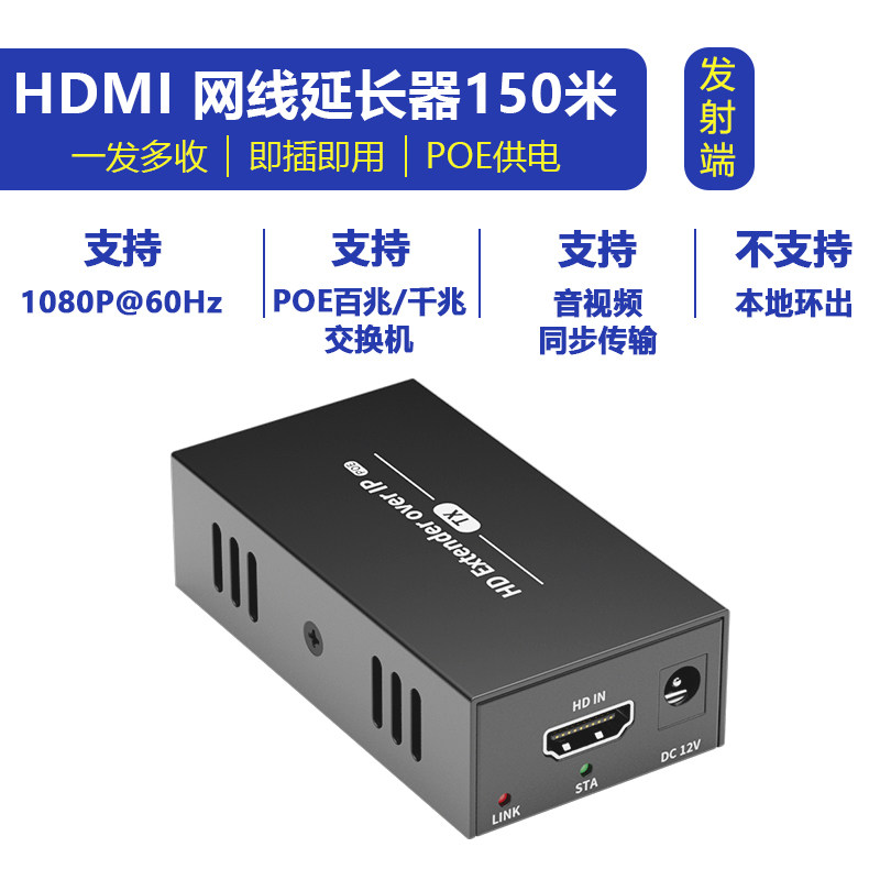 150m / [DT273P] 150 meters + 1080P + POE power supply (no local loopout at the transmitter) Supports 100M/Gigabit switches