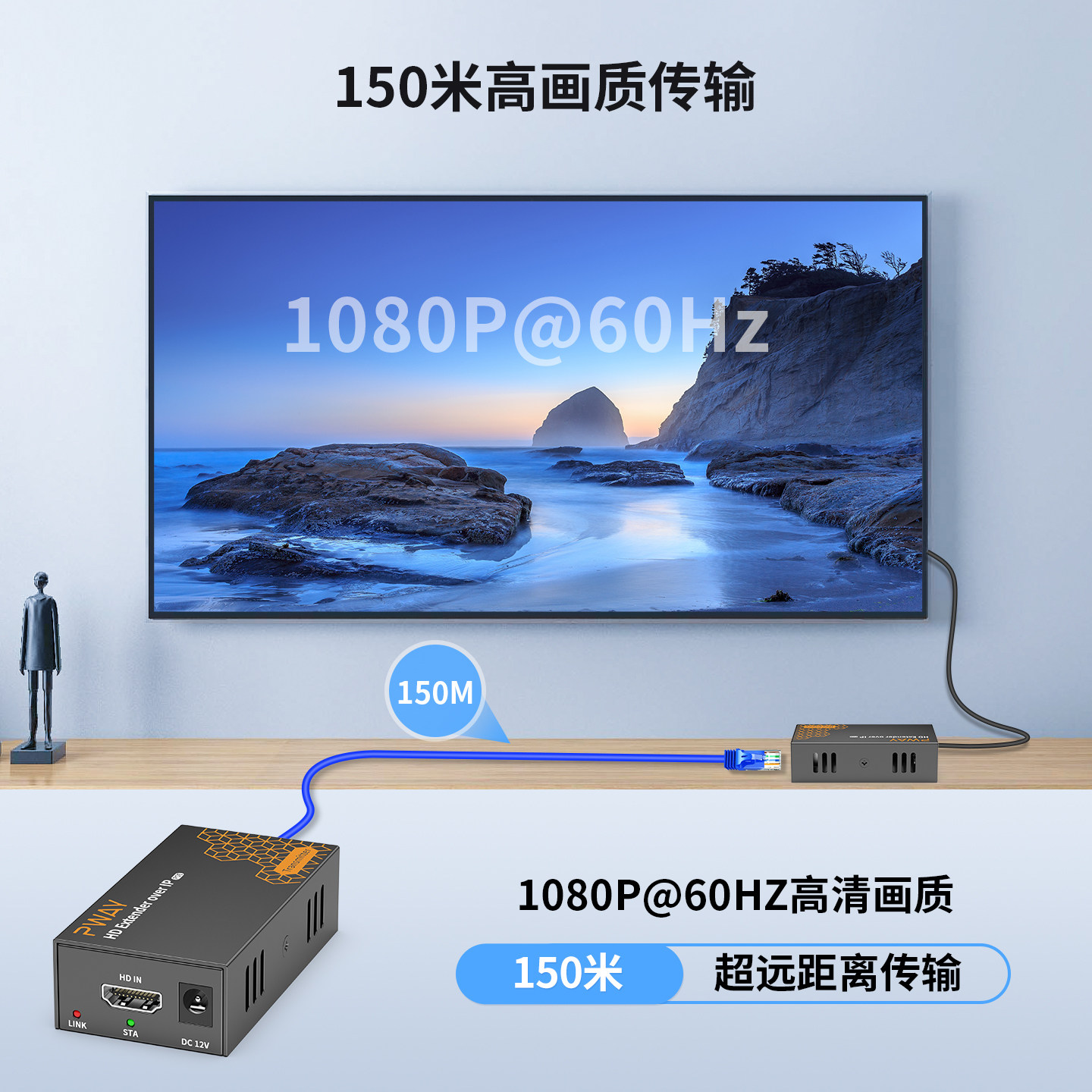 150m / [DT273P] 150 meters + 1080P + POE power supply (receiving end) supports 100M/Gigabit switches