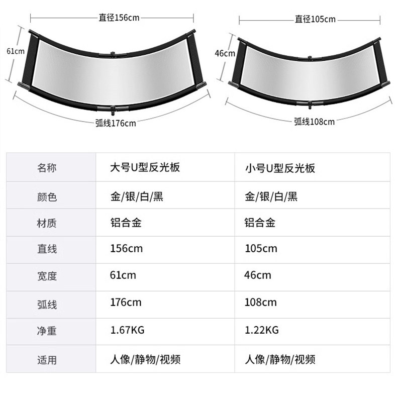 IMAGEACE U-shaped curved photographic reflector, portable reflector, available in white, silver, gold, and black – all in one color – .