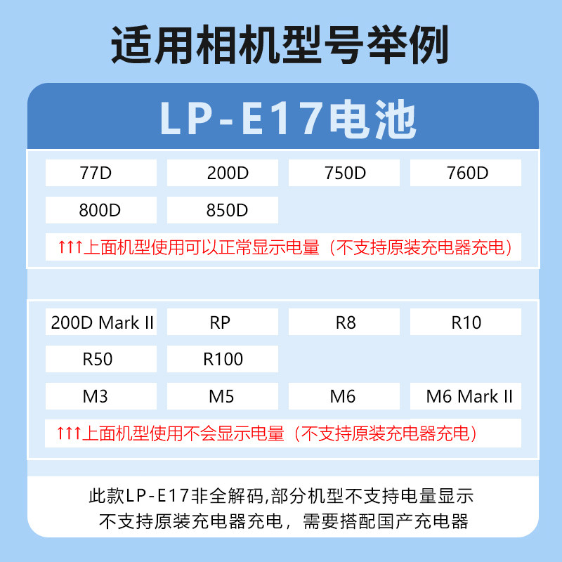 Note (Some cameras do not display battery level and can only use domestically produced chargers).