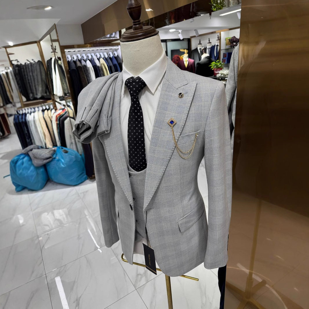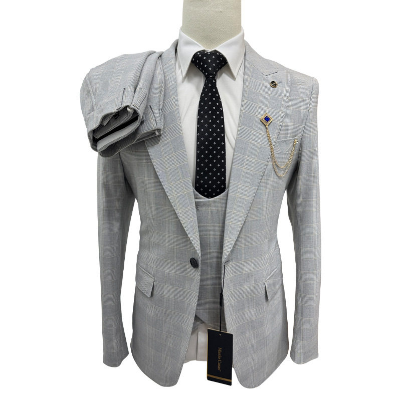 men's suit wedding casual host plaid suit 3-piece set