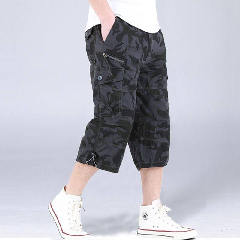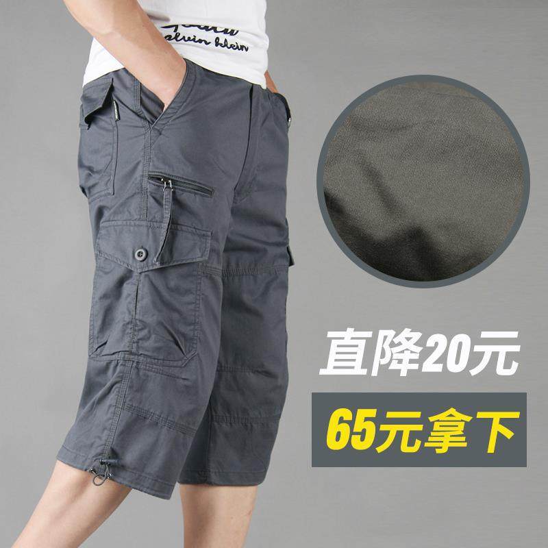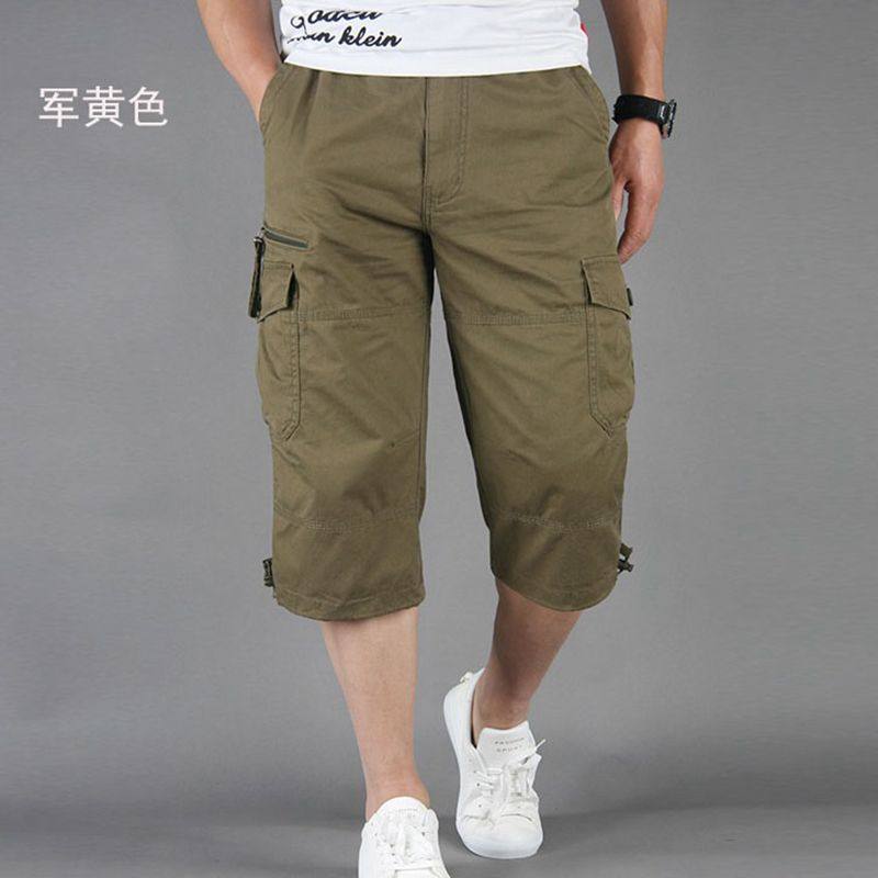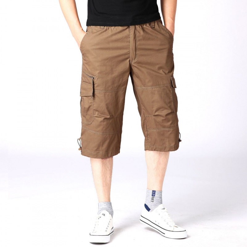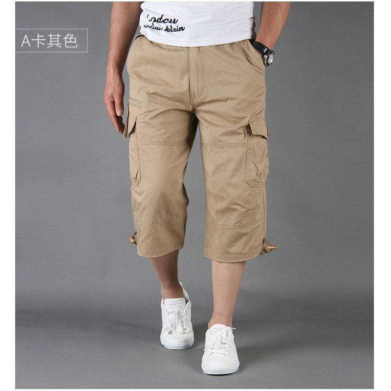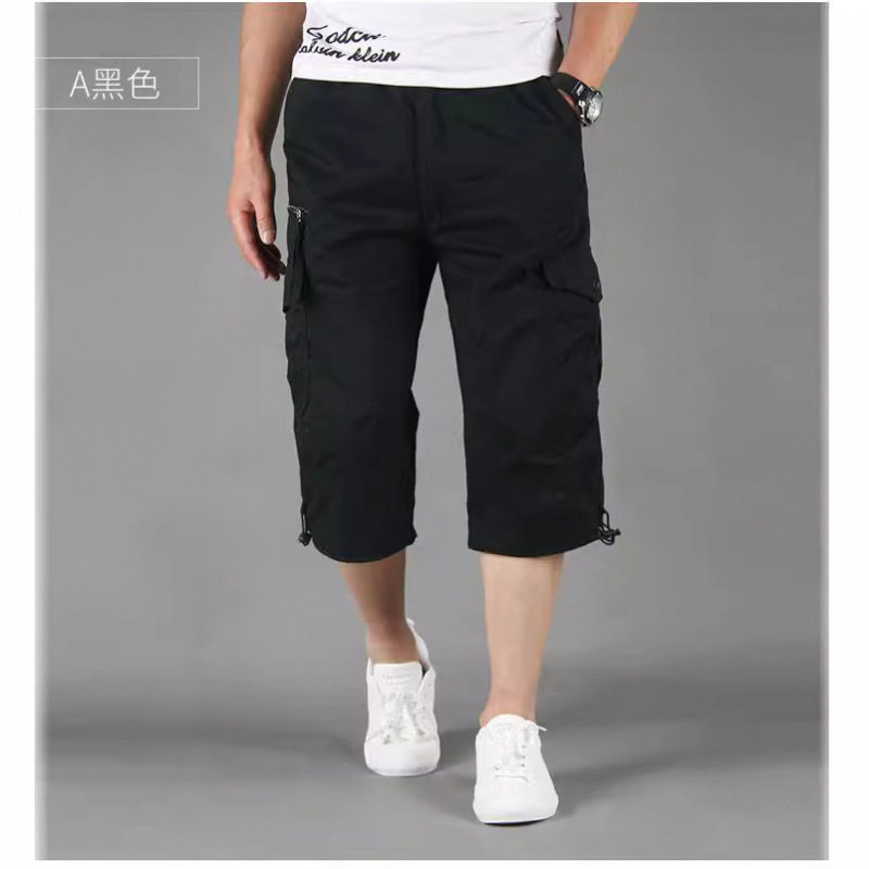 multi-pocket cropped trousers for men loose straight leg 7-quarter pants shorts for men