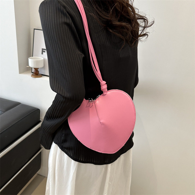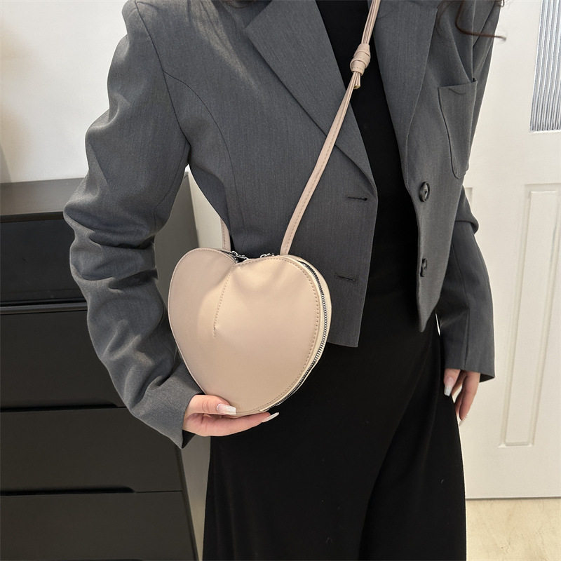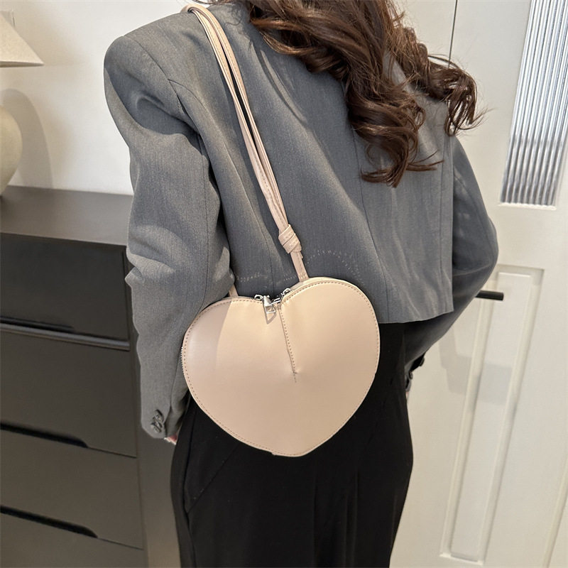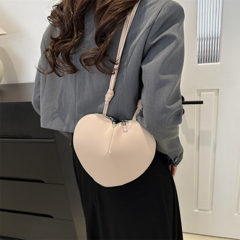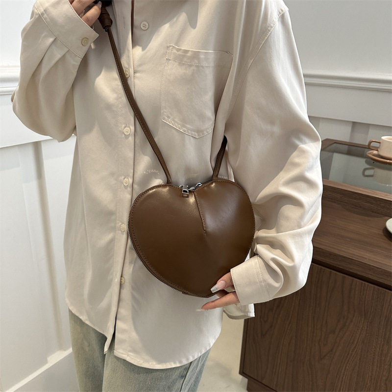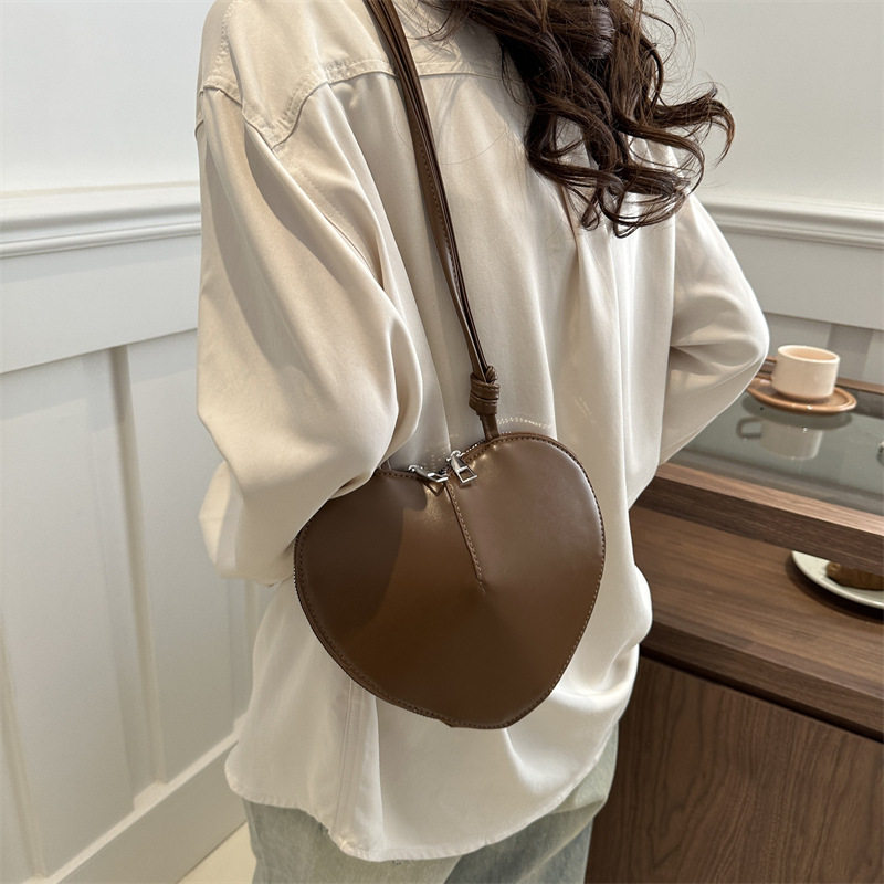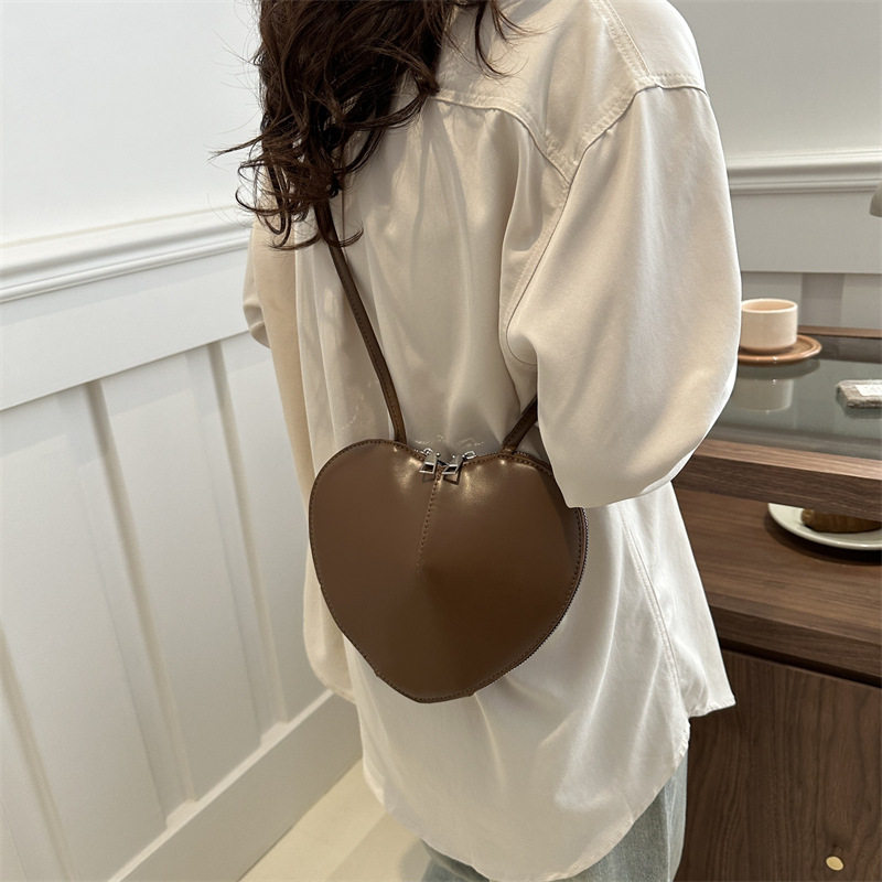 New fashionable and personalized heart-shaped crossbody bag, retro style, solid color shoulder bag, small peach heart, cute and trendy crossbody bag