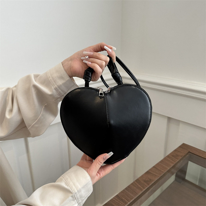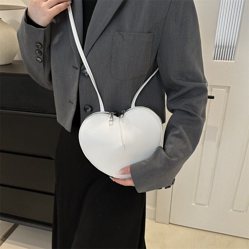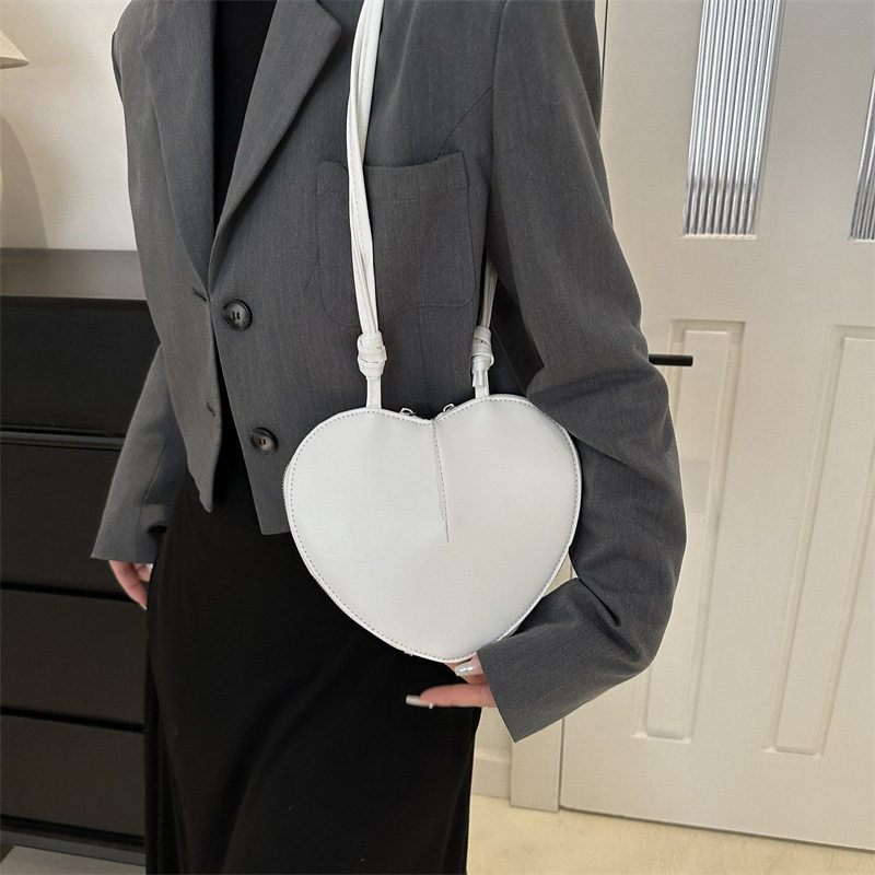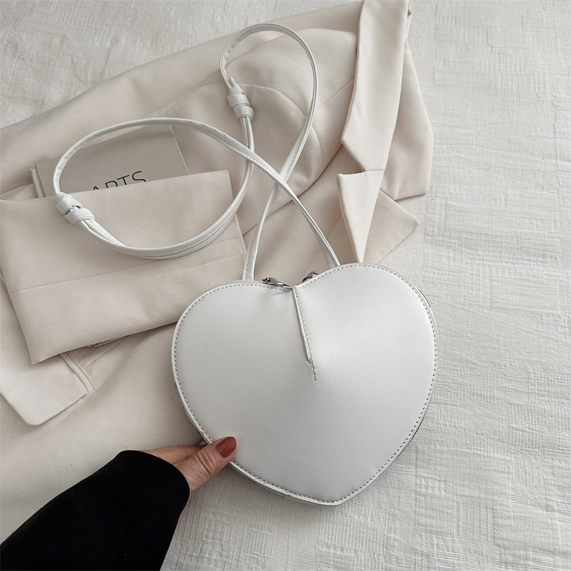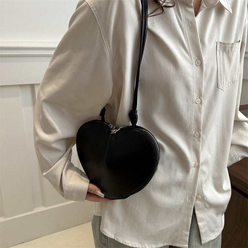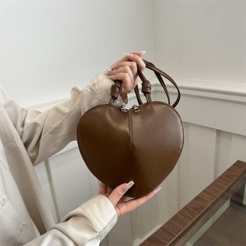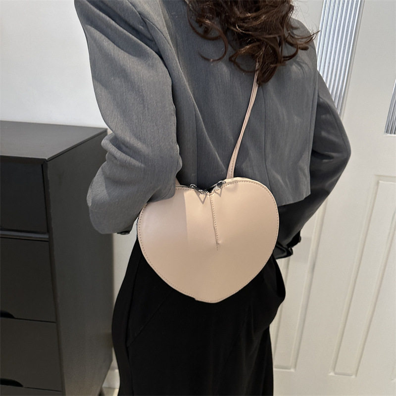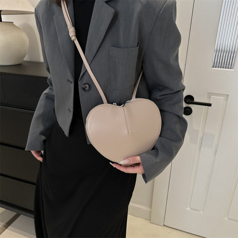 New fashionable and personalized heart-shaped crossbody bag, retro style, solid color shoulder bag, small peach heart, cute and trendy crossbody bag