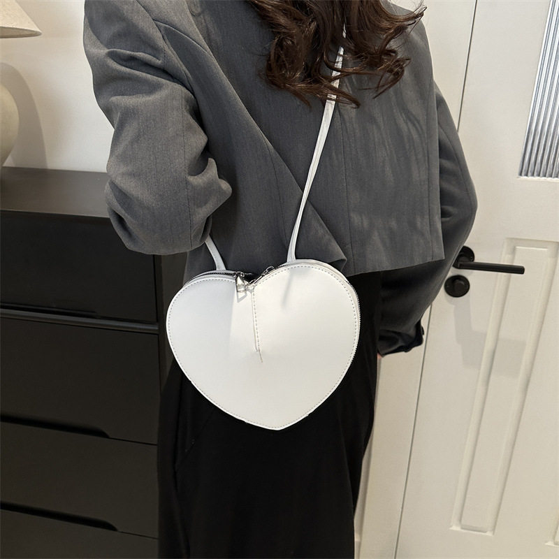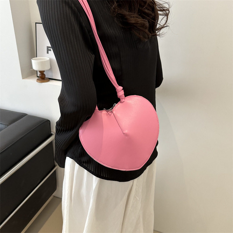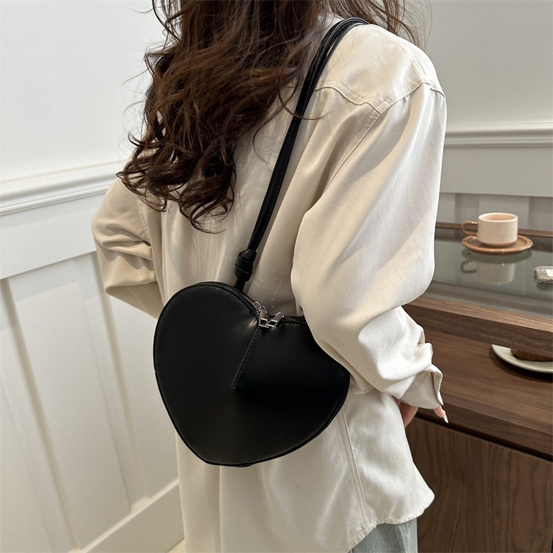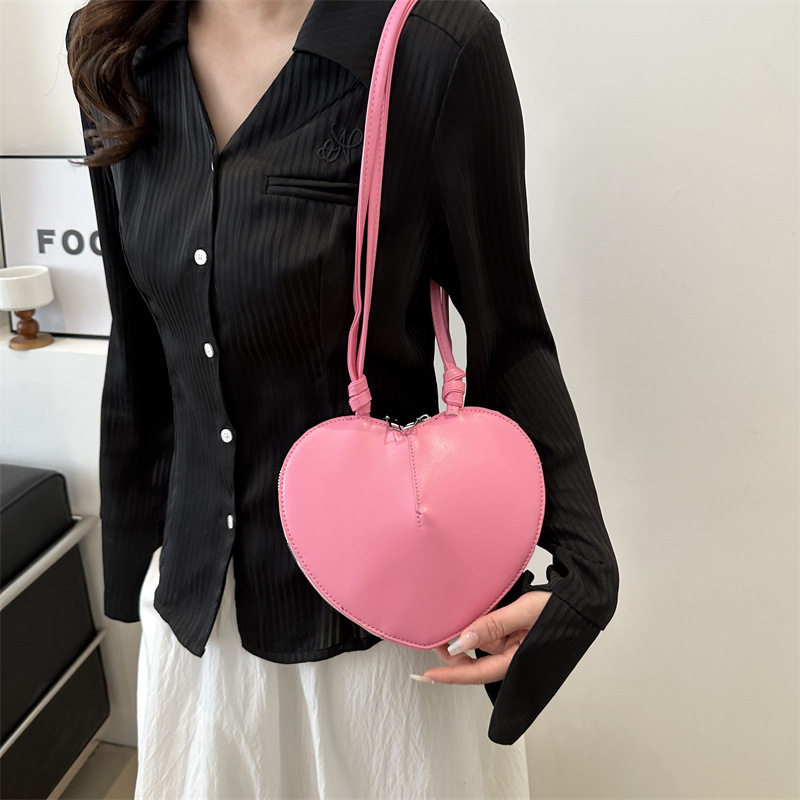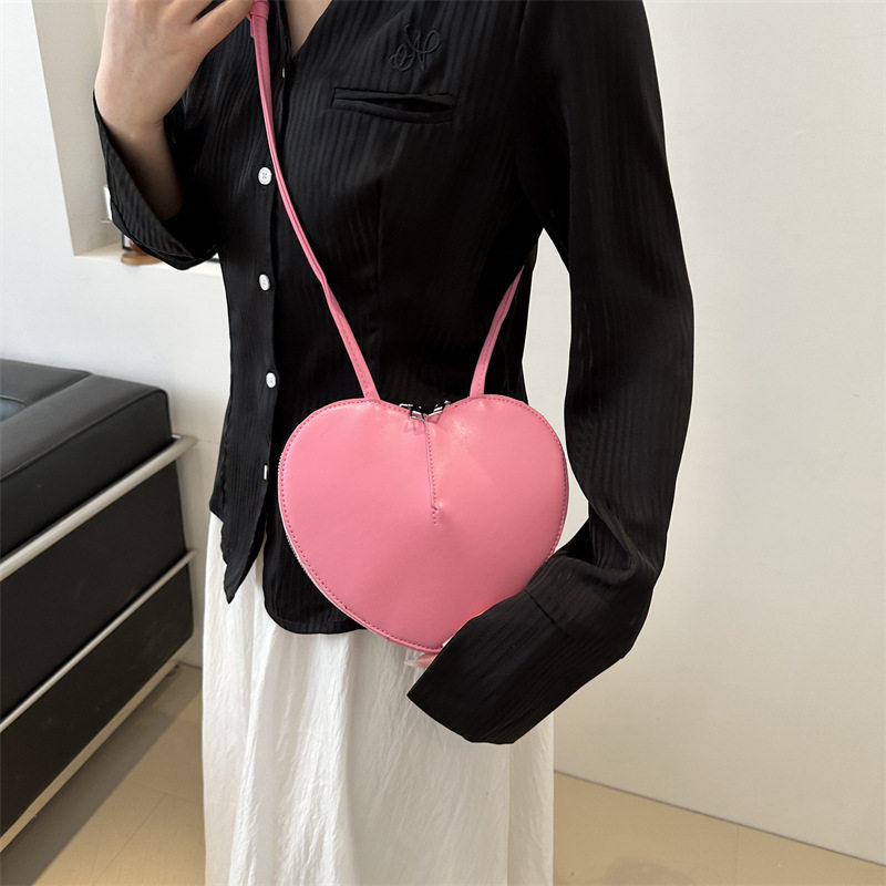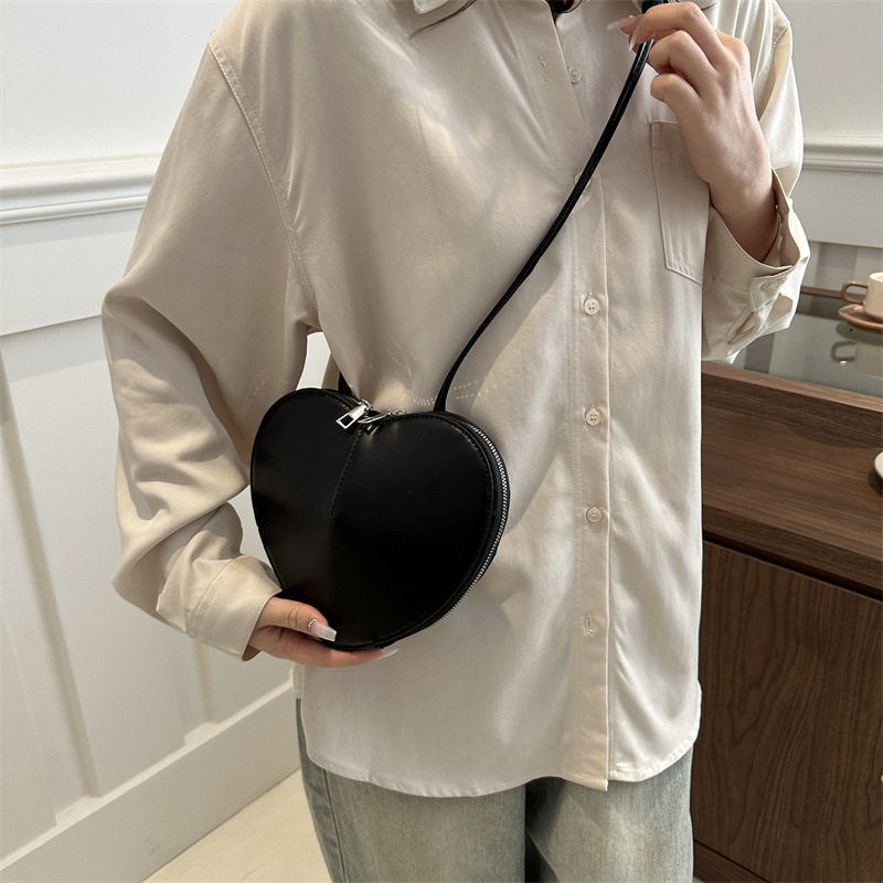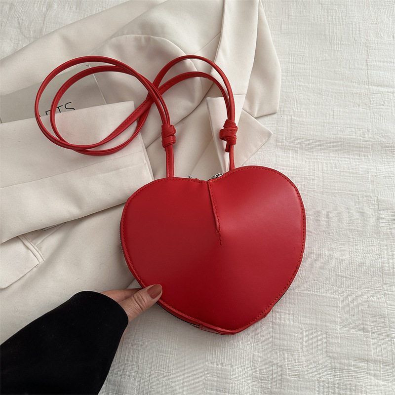 New fashionable and personalized heart-shaped crossbody bag, retro style, solid color shoulder bag, small peach heart, cute and trendy crossbody bag