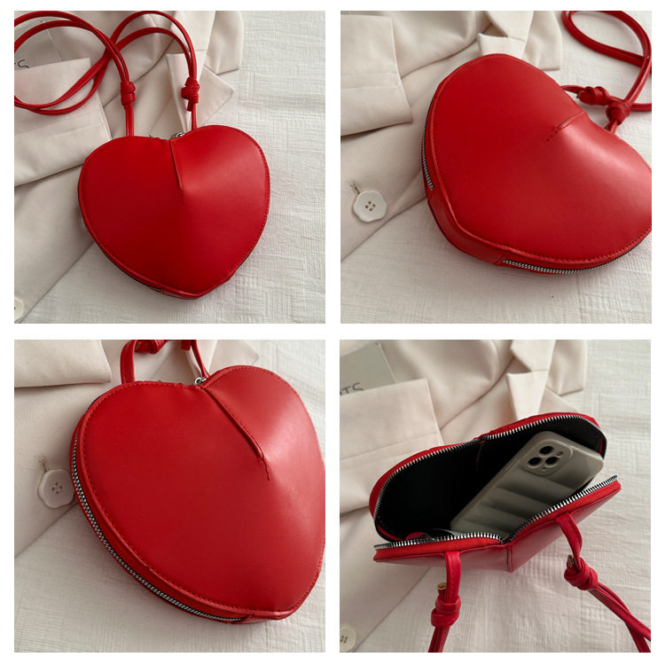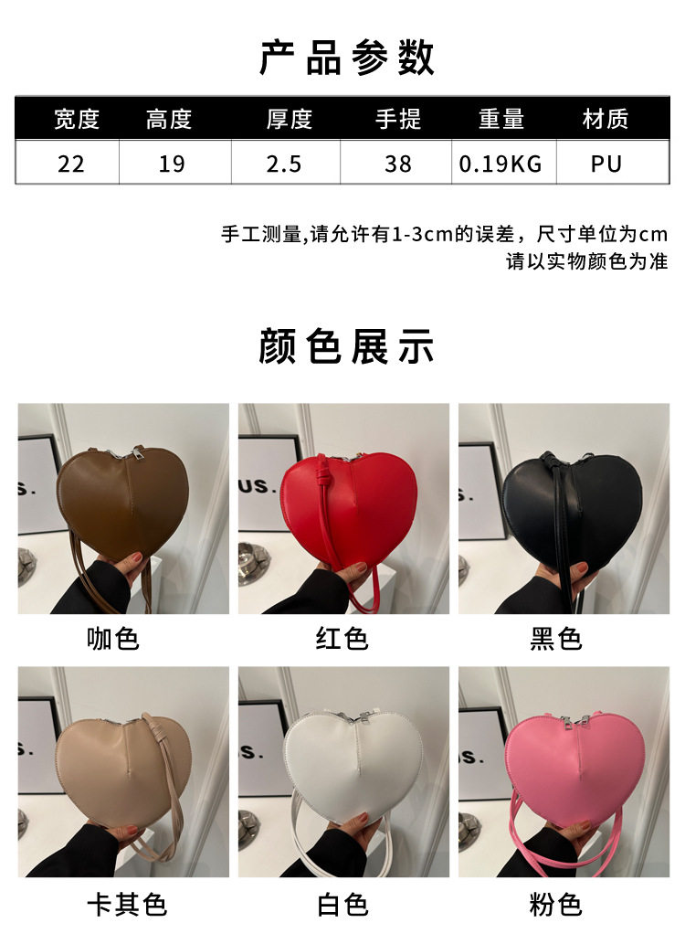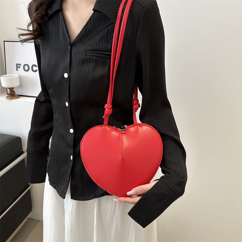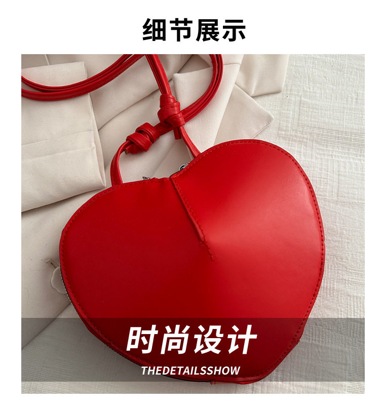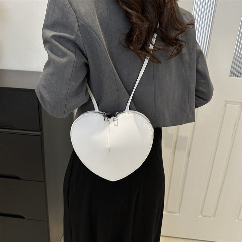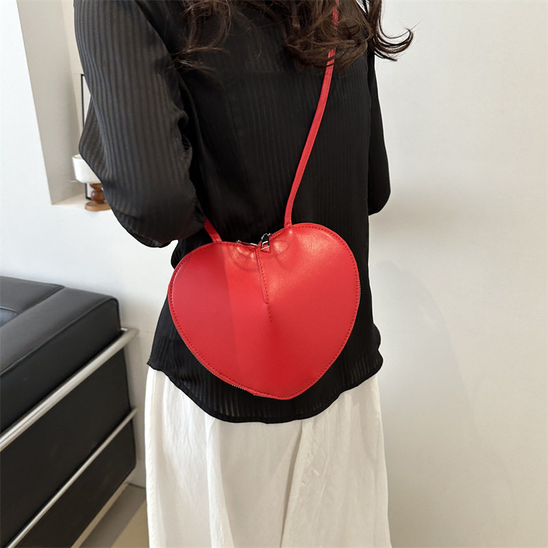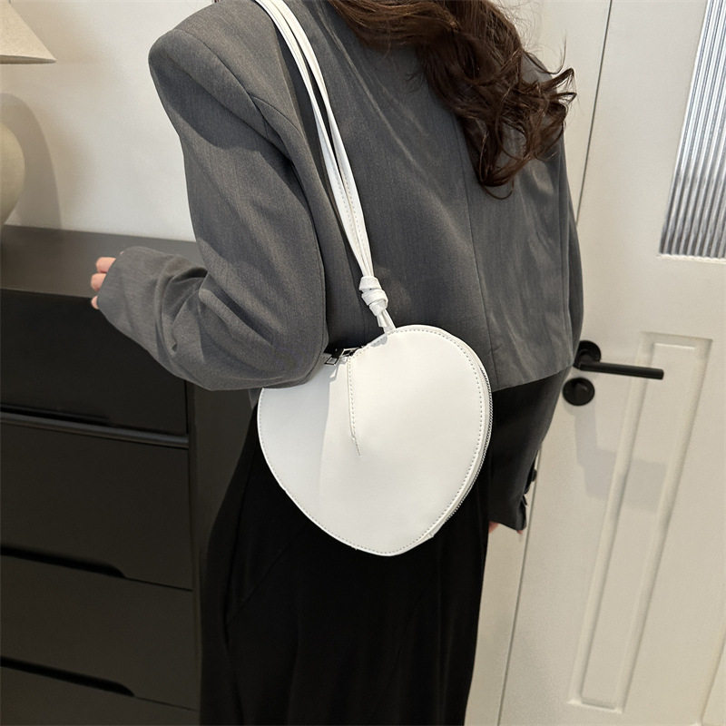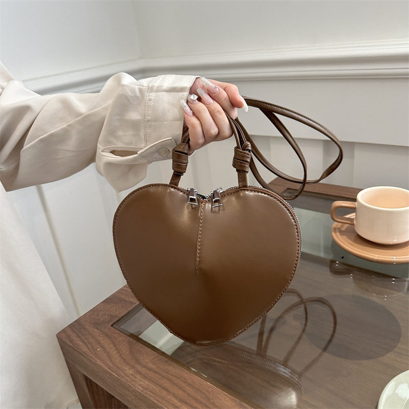 New fashionable and personalized heart-shaped crossbody bag, retro style, solid color shoulder bag, small peach heart, cute and trendy crossbody bag