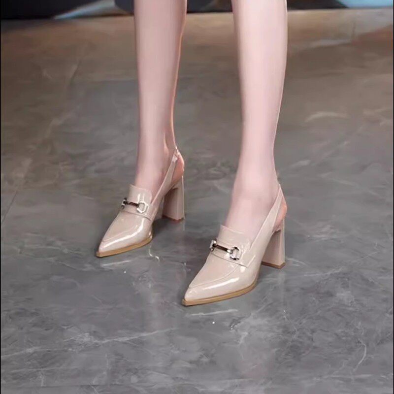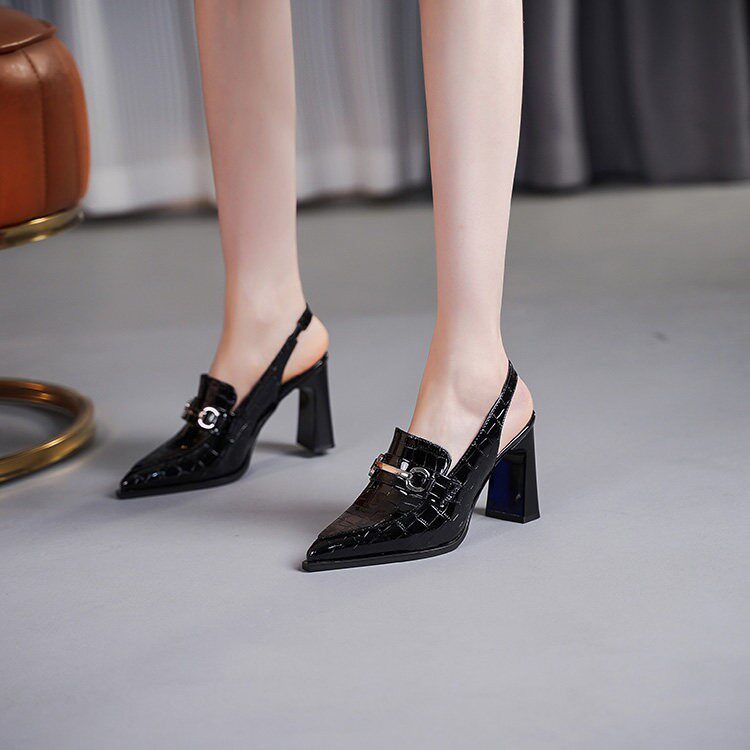 Pointed toe design high-heeled shoes for women outer wear professional sandals deep mouth thick heel work shoes