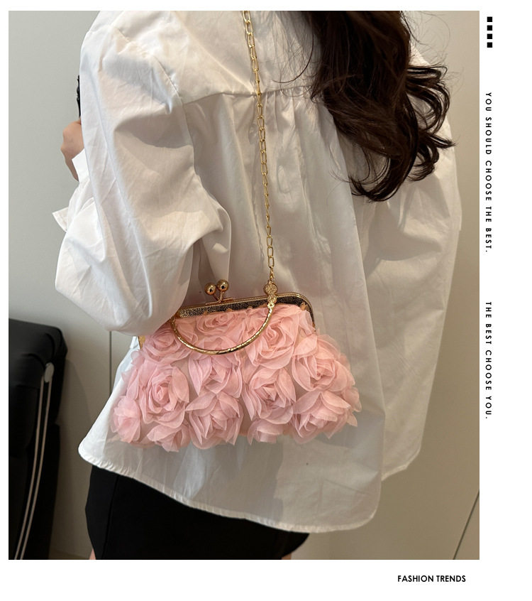 rose pearl dinner chain bag banquet handbag cheongsam evening wear versatile cross-body bag